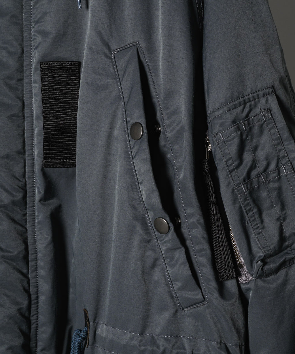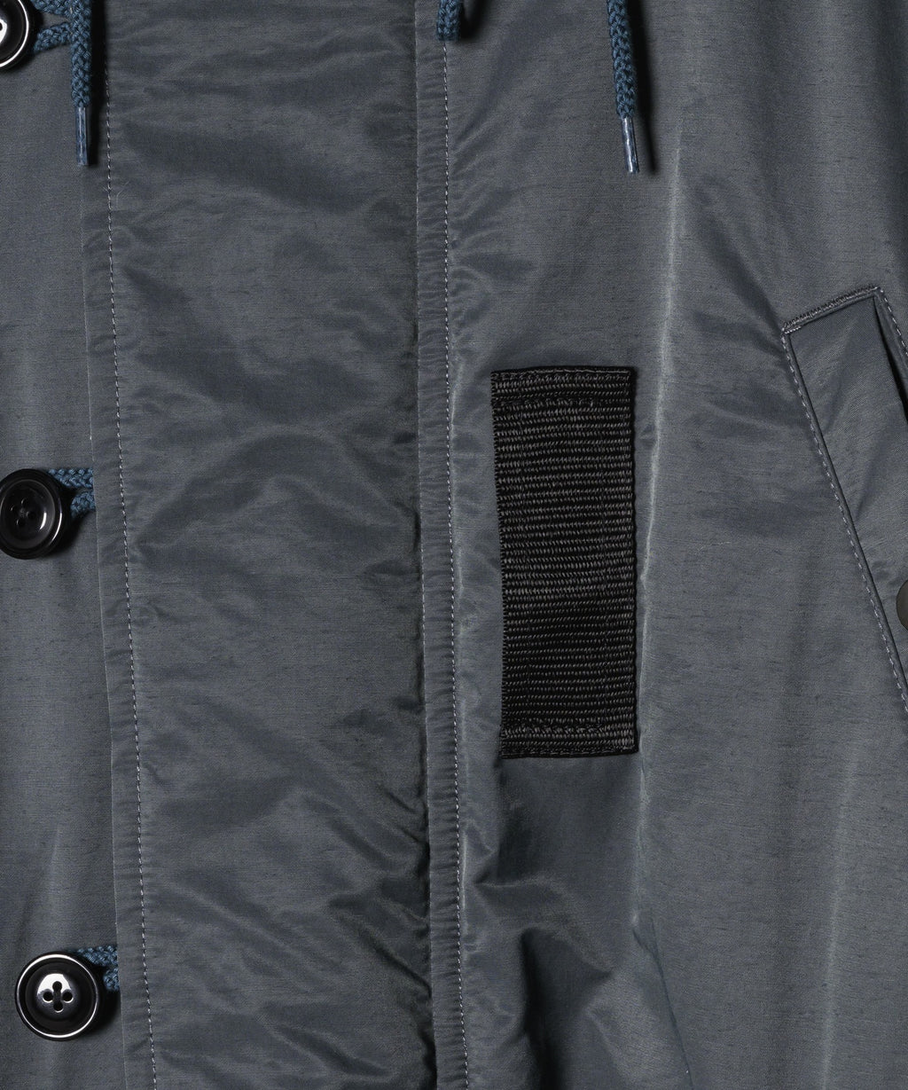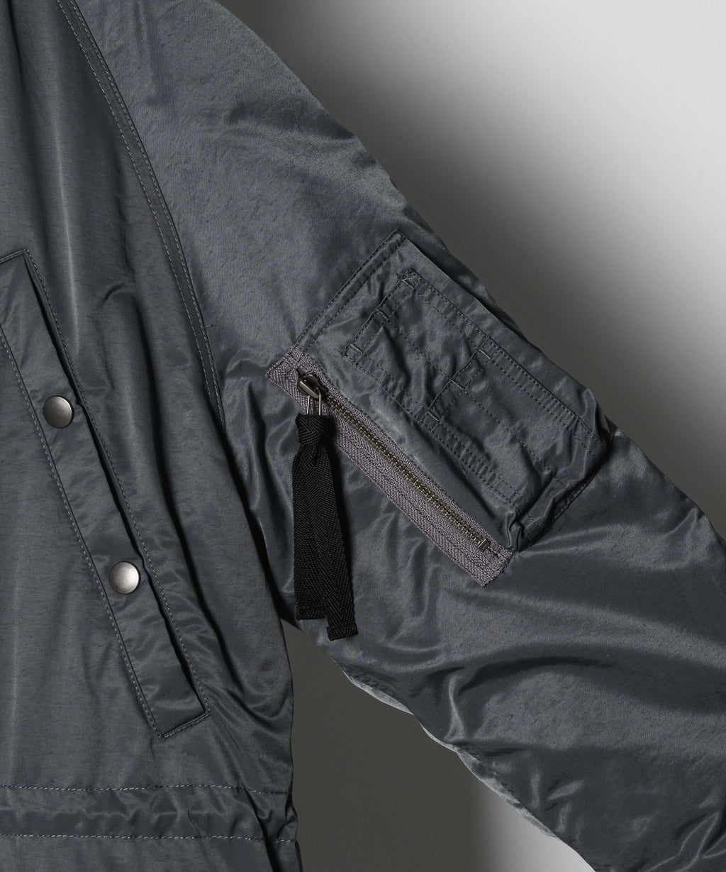・光沢のあるミリタリーらしいナイロン混の生地を使用