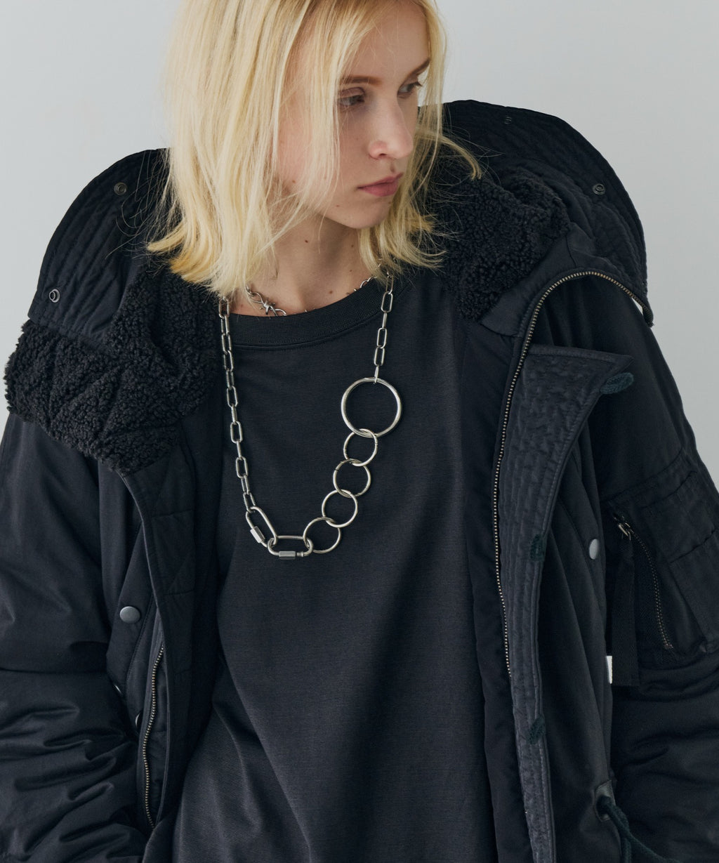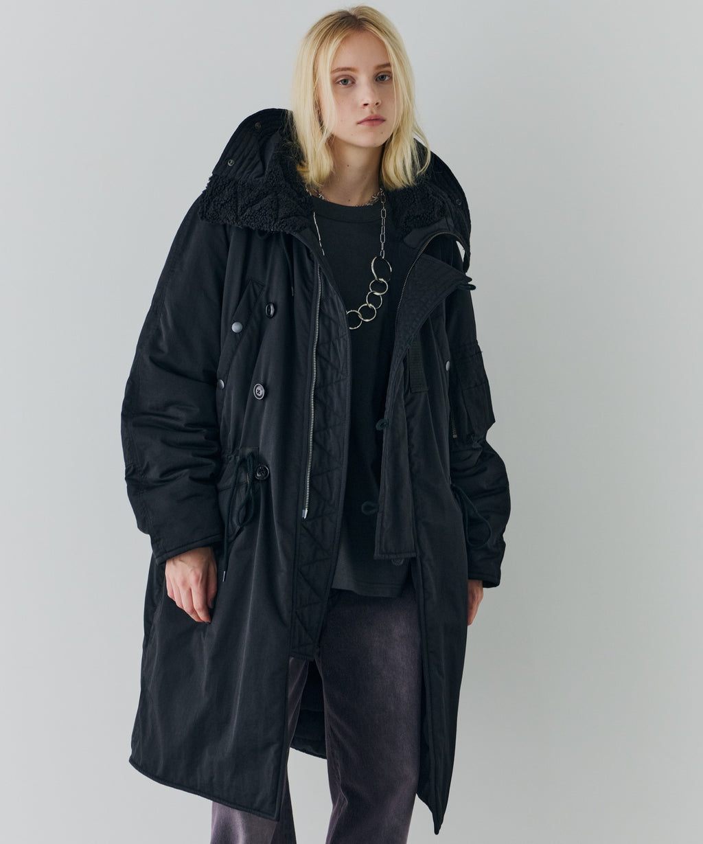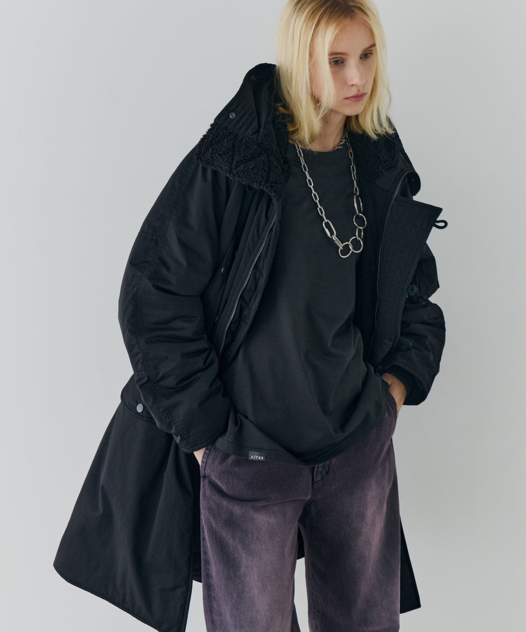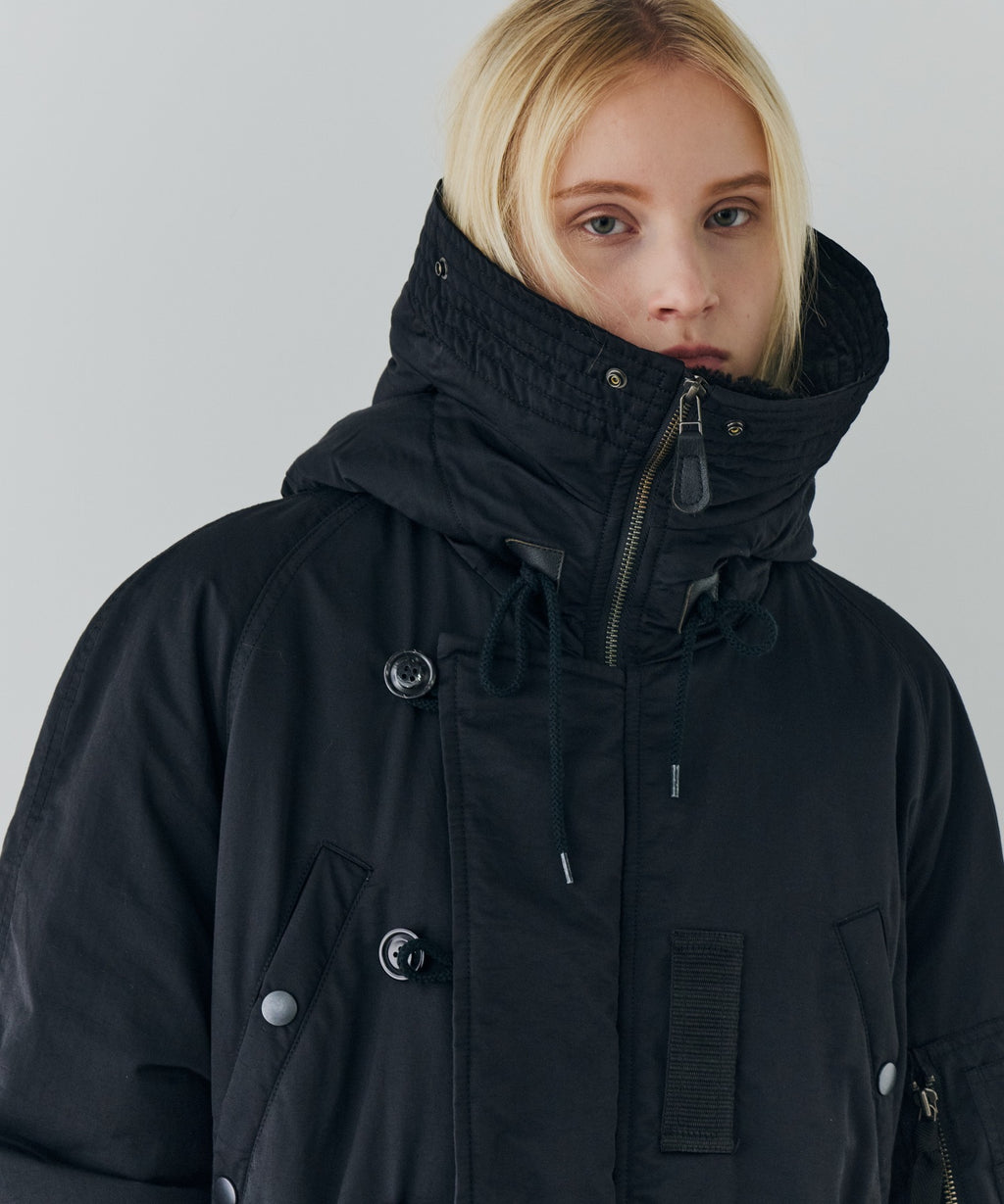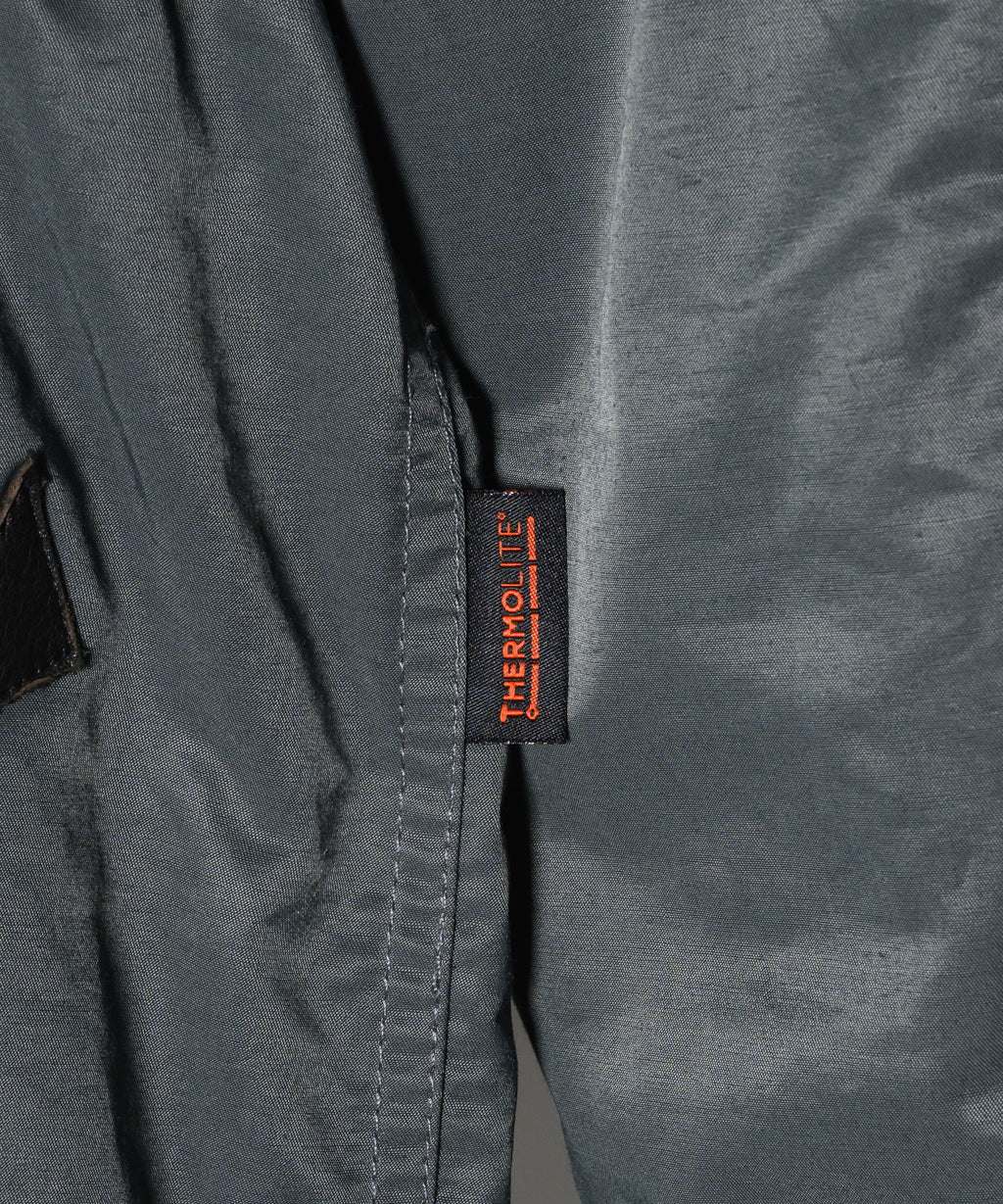 ・ゆったりとしたサイズ感で中に重ね着もし易く、要所に防寒の細かいディティールを取り入れたフライトコート