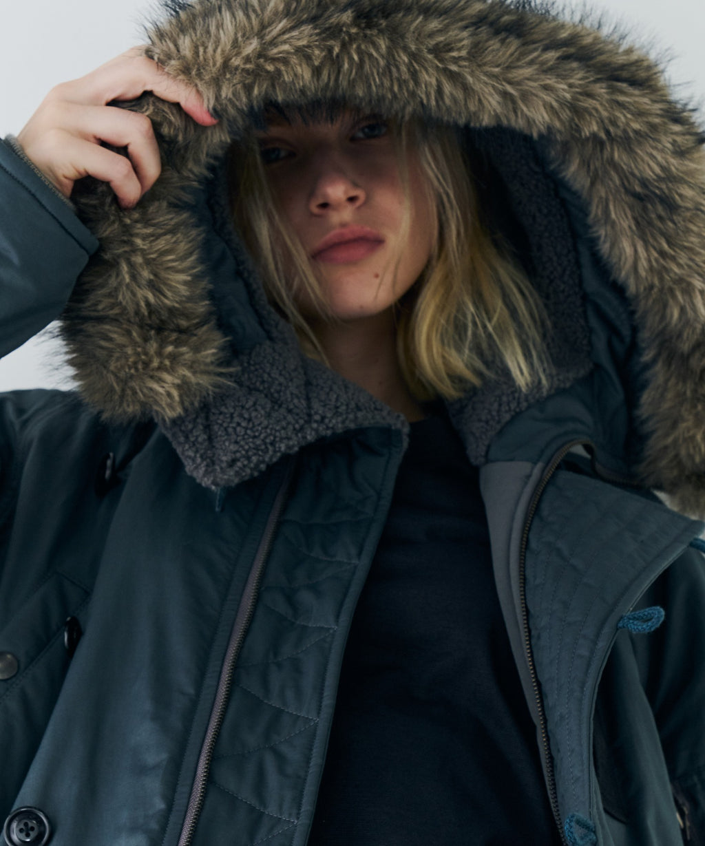 ・極寒地での着用を目的に開発されたアメリカ空軍のナイロン製フライトジャケットの名作N-3から派生したモデルN-3Bをベースにデザイン