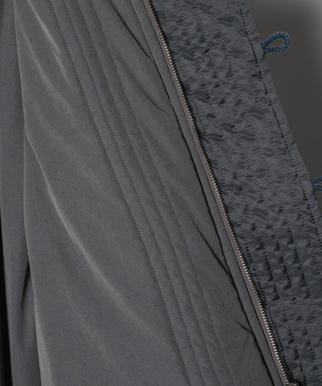 ・首元まで覆える高めのジップにフードは顔回りや首を寒さから守るため大きなフードを取り付けたディティール