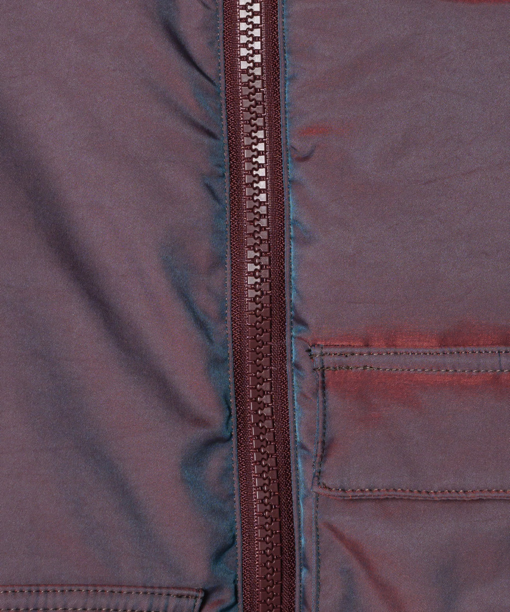 ・艶やかで綺麗な光沢感と光の加減や角度によって色の見え方が変わる玉虫色のナイロン混の生地を使用