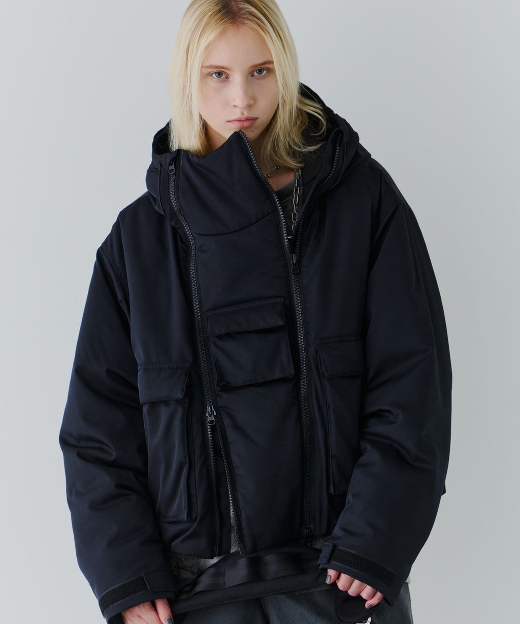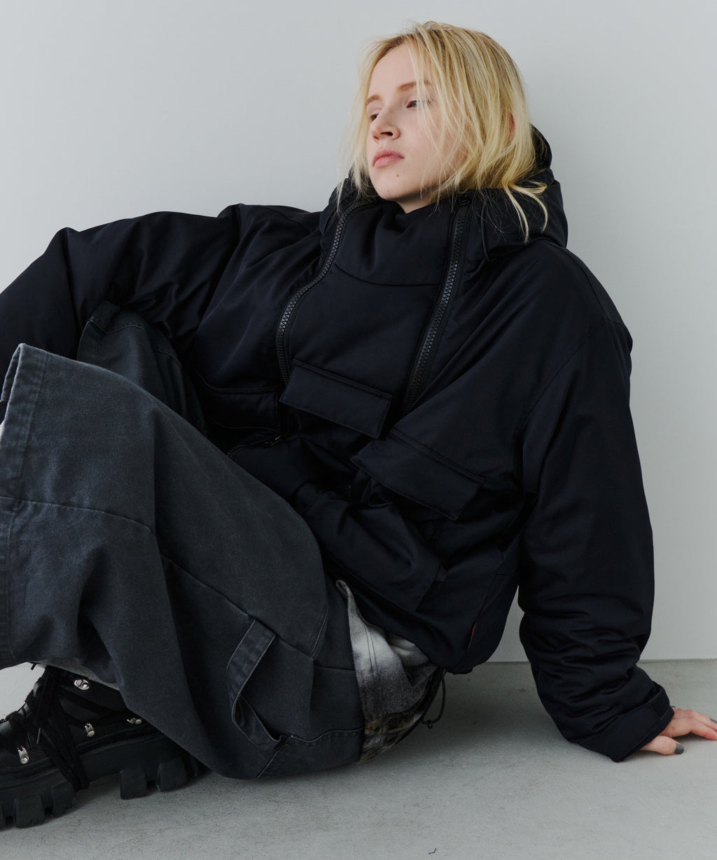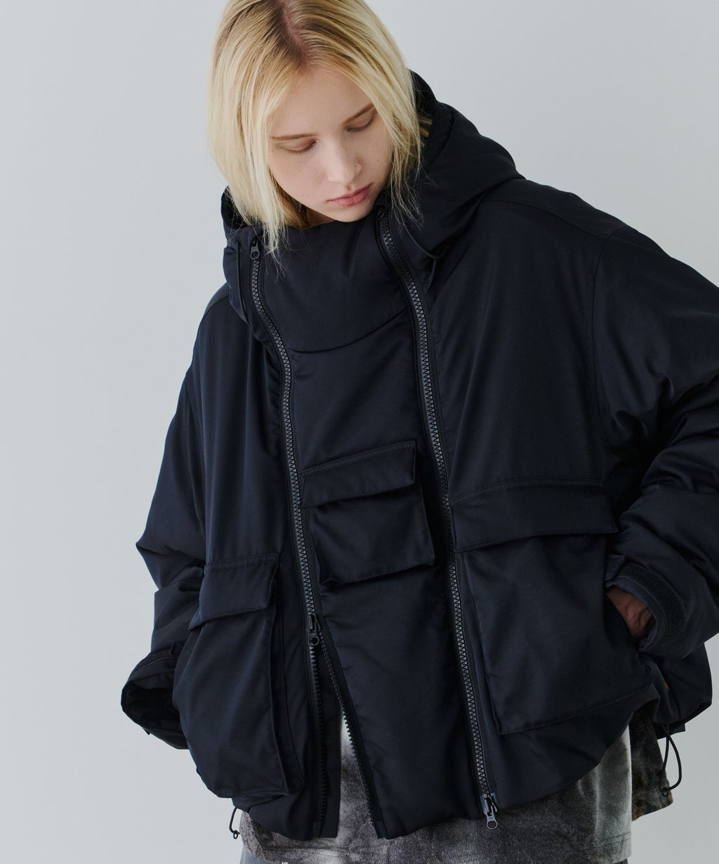 ・ジップを片方だけ開けたり首元だけ開けたりと好みに合わせてカスタムできるダブルジップデザイン