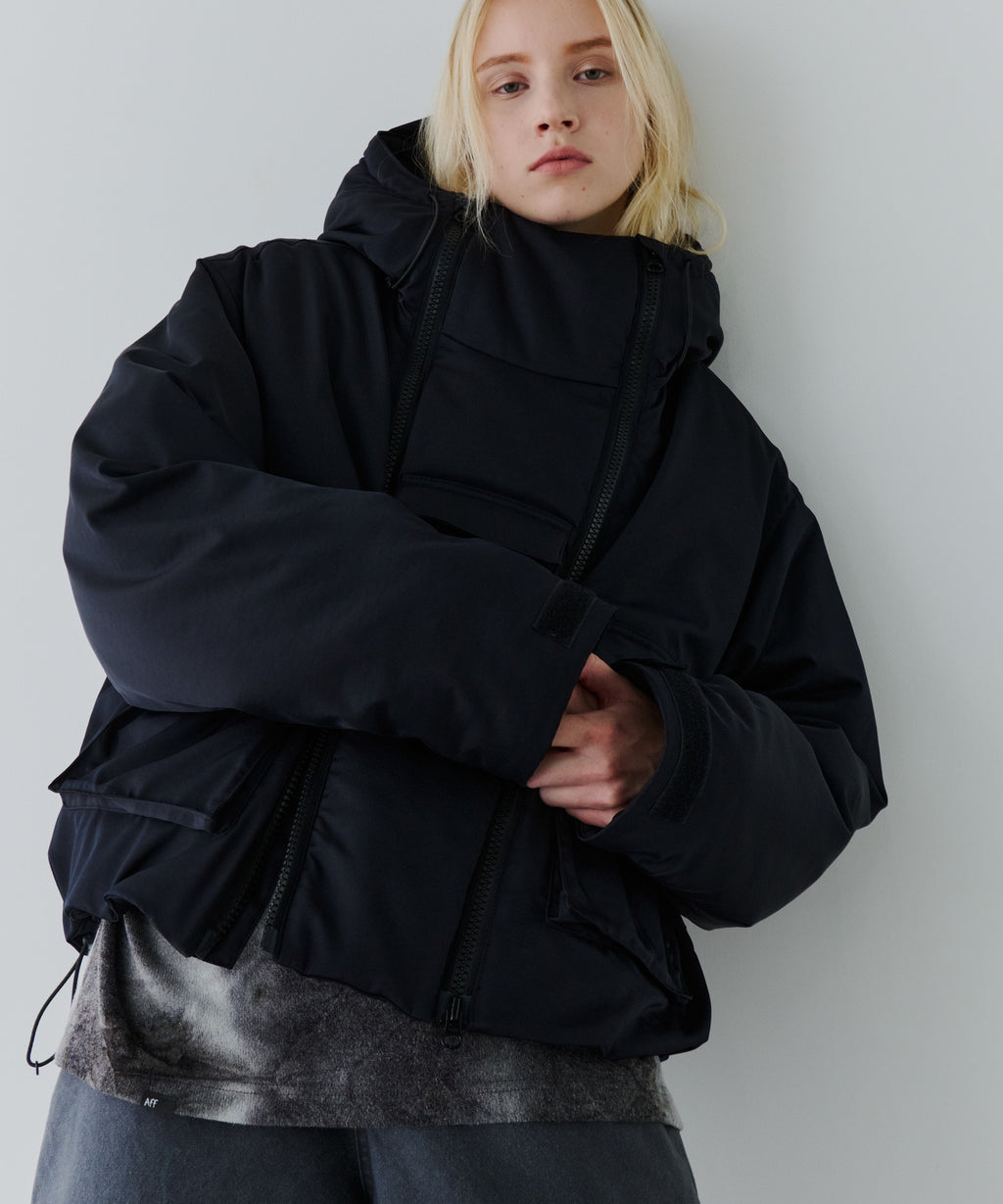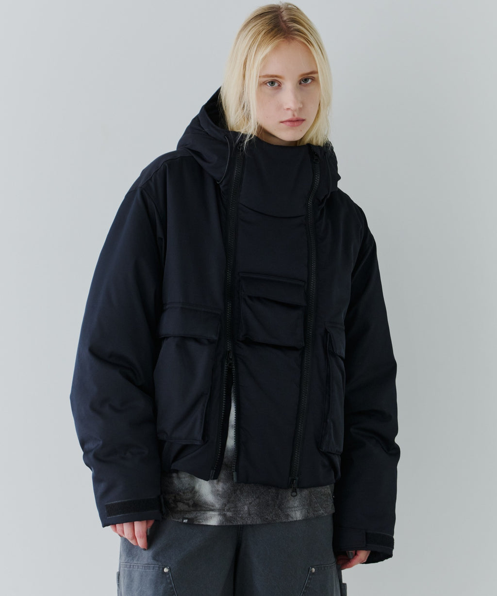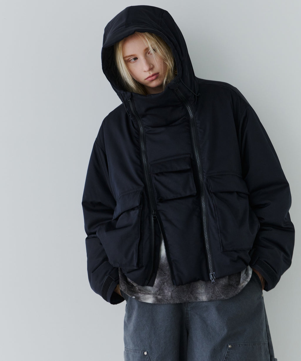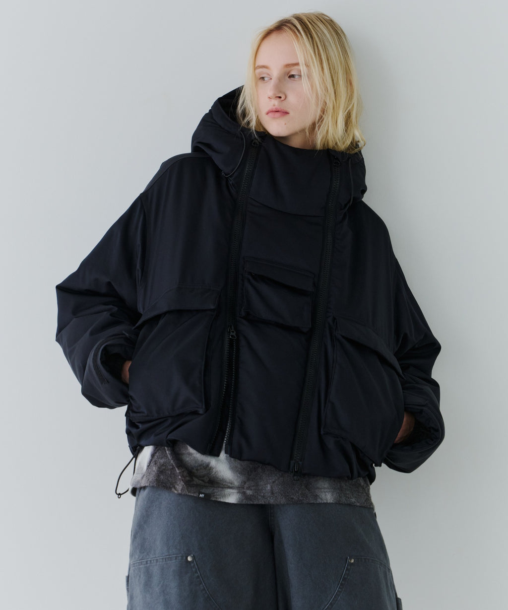 ・ジップを片方だけ開けたり首元だけ開けたりと好みに合わせてカスタムできるダブルジップデザイン