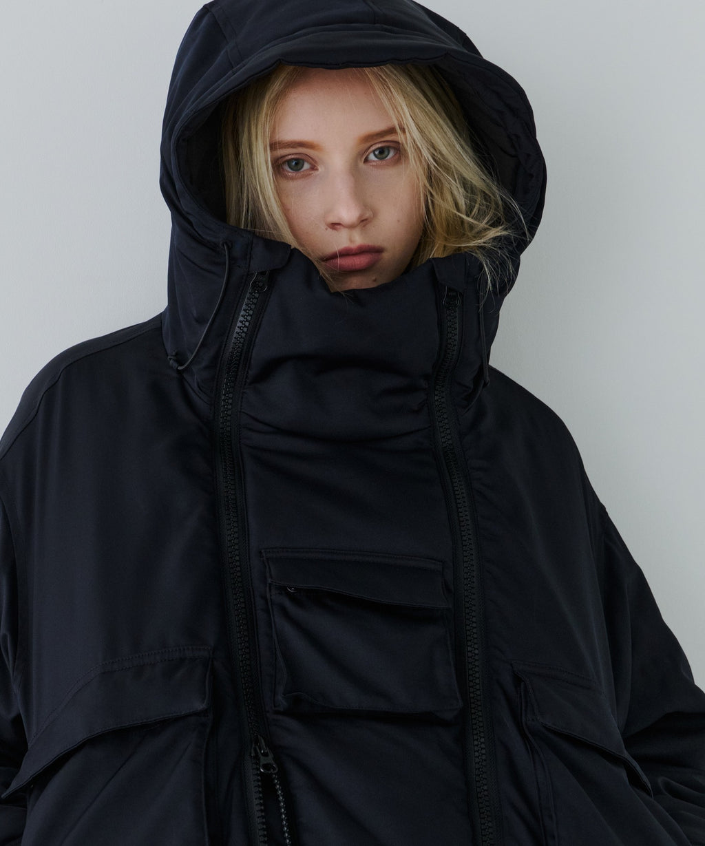 ・冷気や風の侵入を防ぐよう首元はハイネック仕様