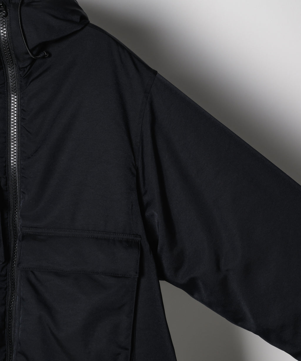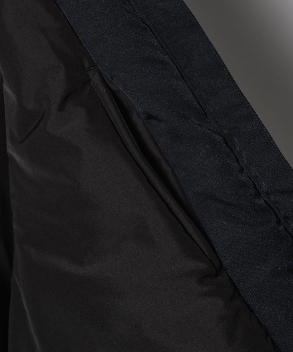 ・裏地はポリエステル素材の生地で保温性を保ち、身幅はゆとりがたっぷりとあるため中に重ね着もしやすい仕上がり