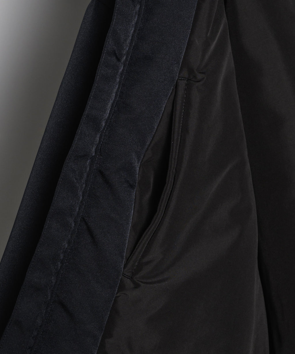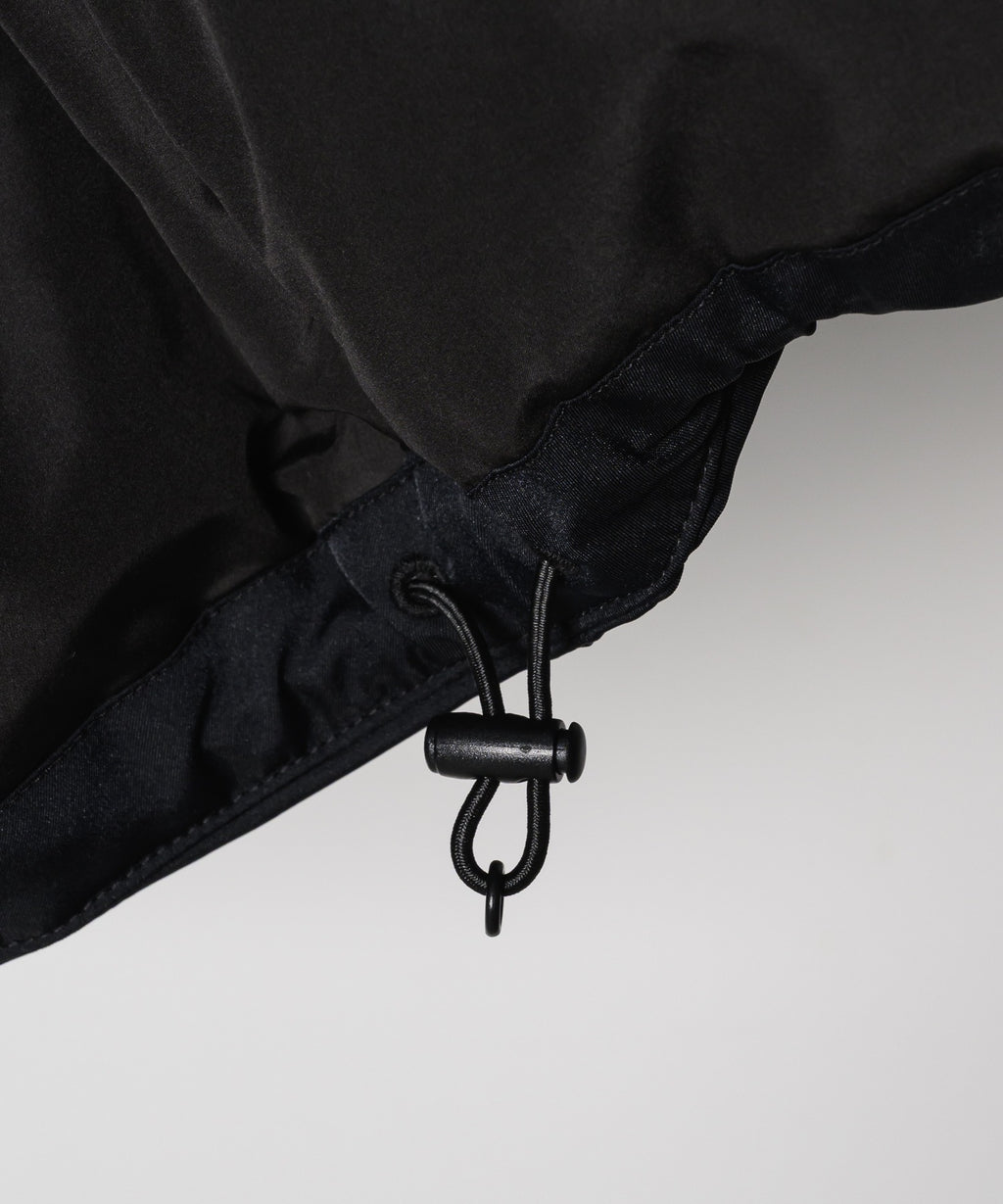 ・前後約5cm差のある着丈で、ヒップを包み込み、裾のサイドに取り付けたドローコードで絞って丸みのあるシルエットに