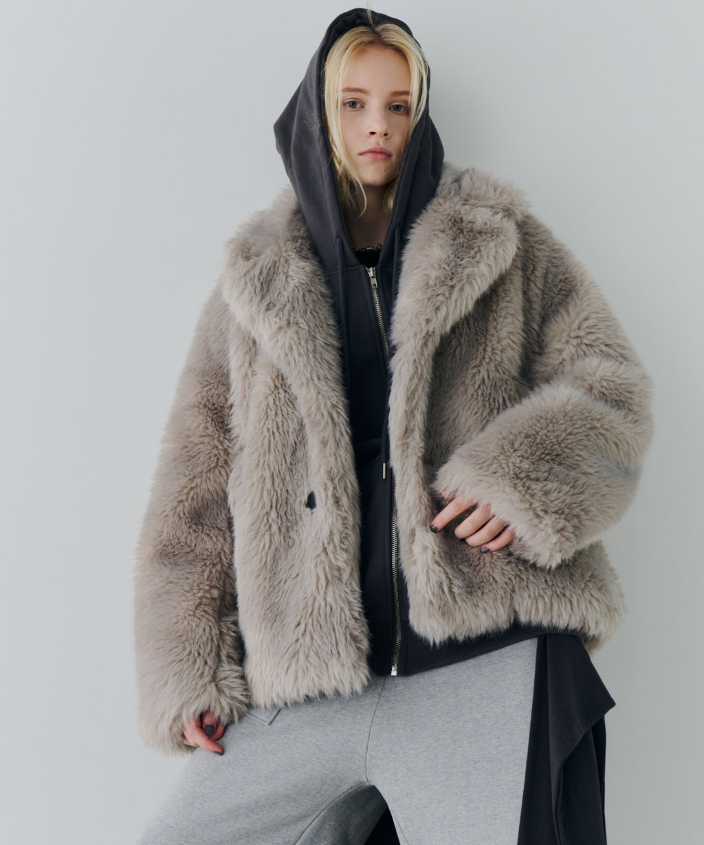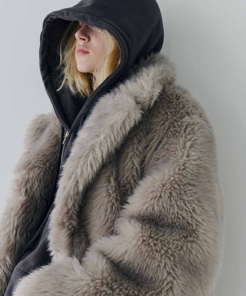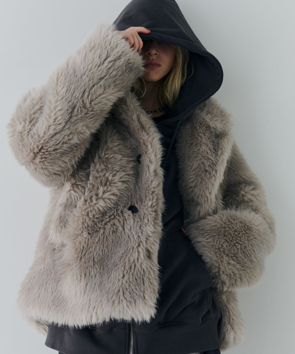 ・毛皮コートのようなボリューム感のあるゆったりとした2ndGジャン風シルエット