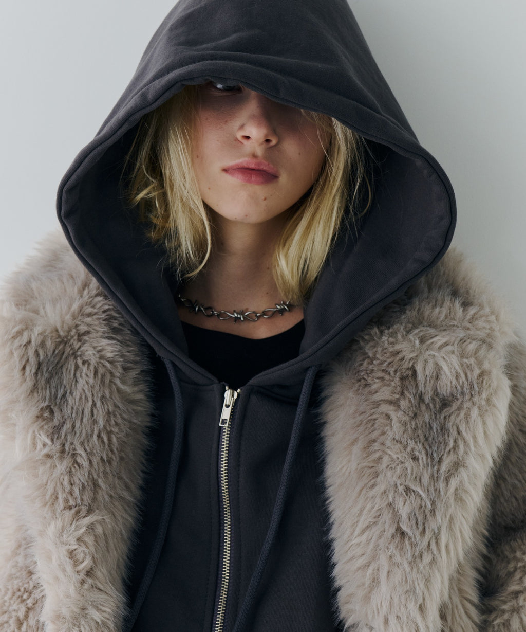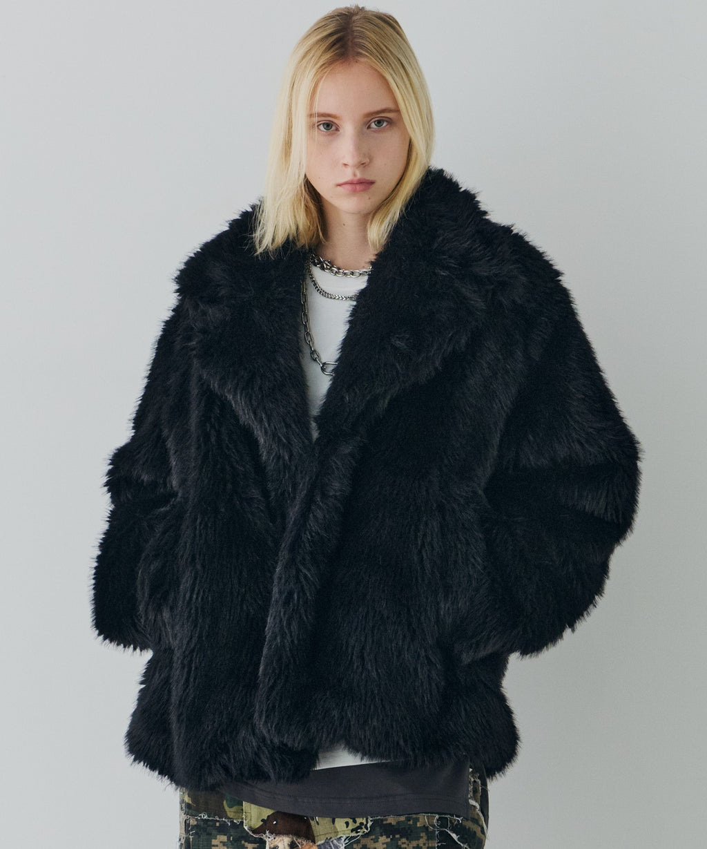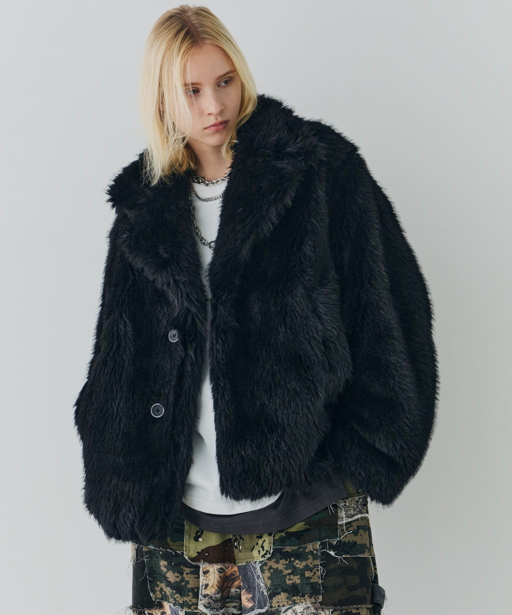 ・毛皮コートのようなボリューム感のあるゆったりとした2ndGジャン風シルエット