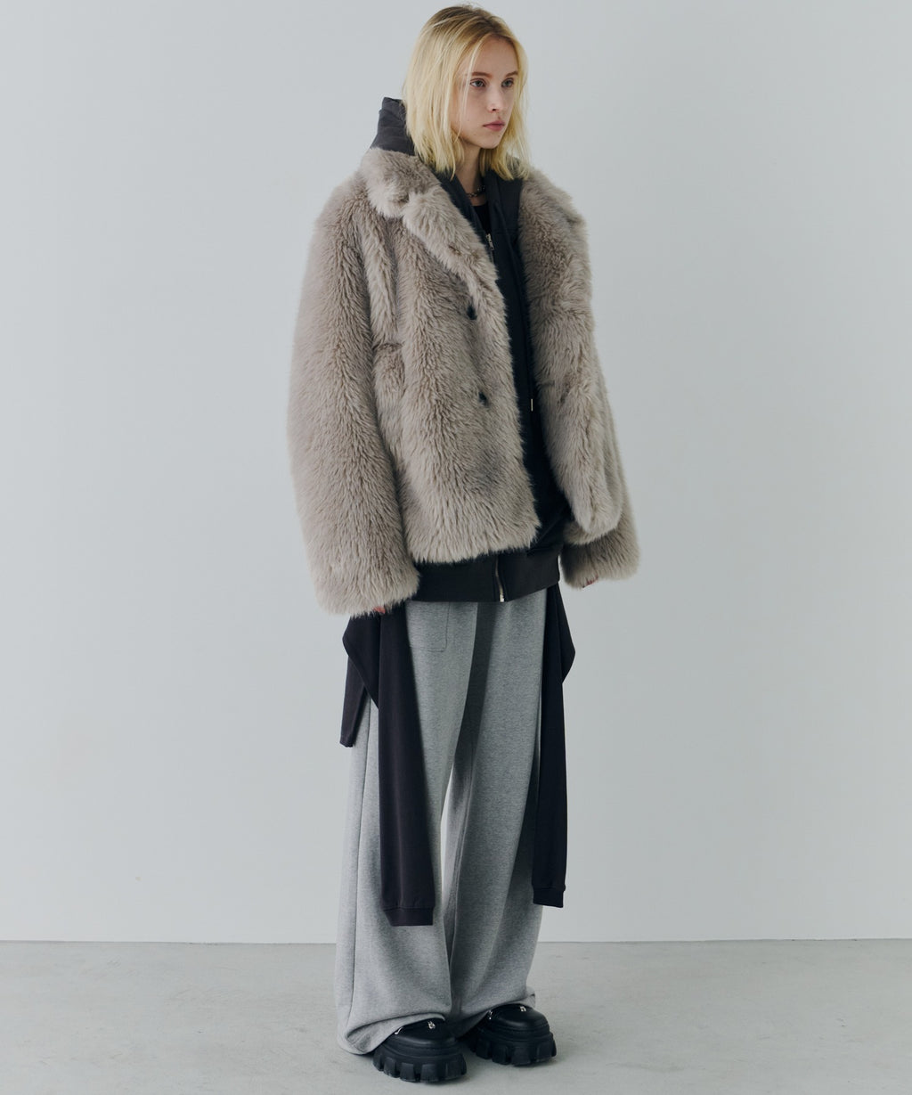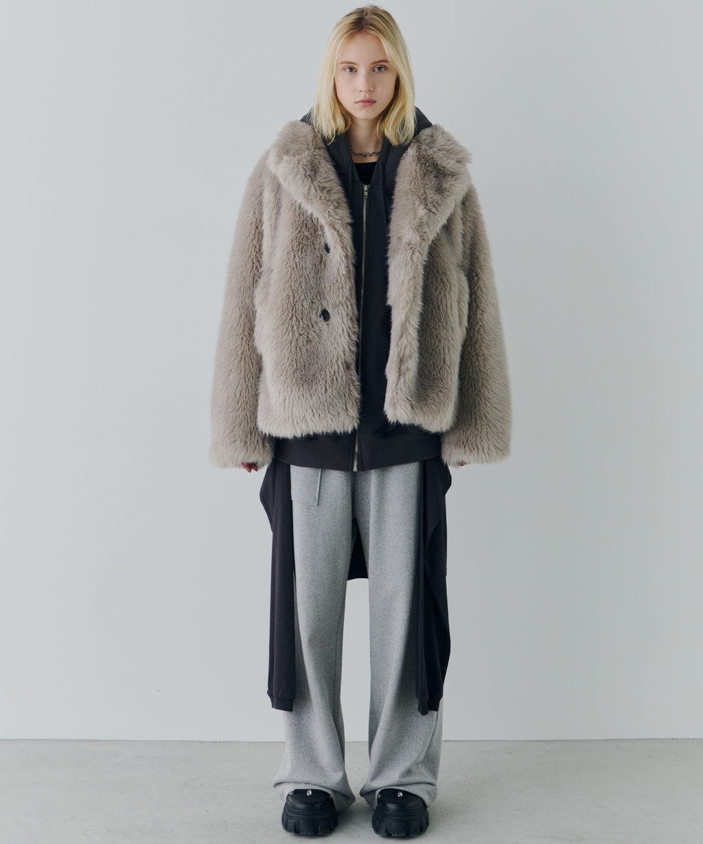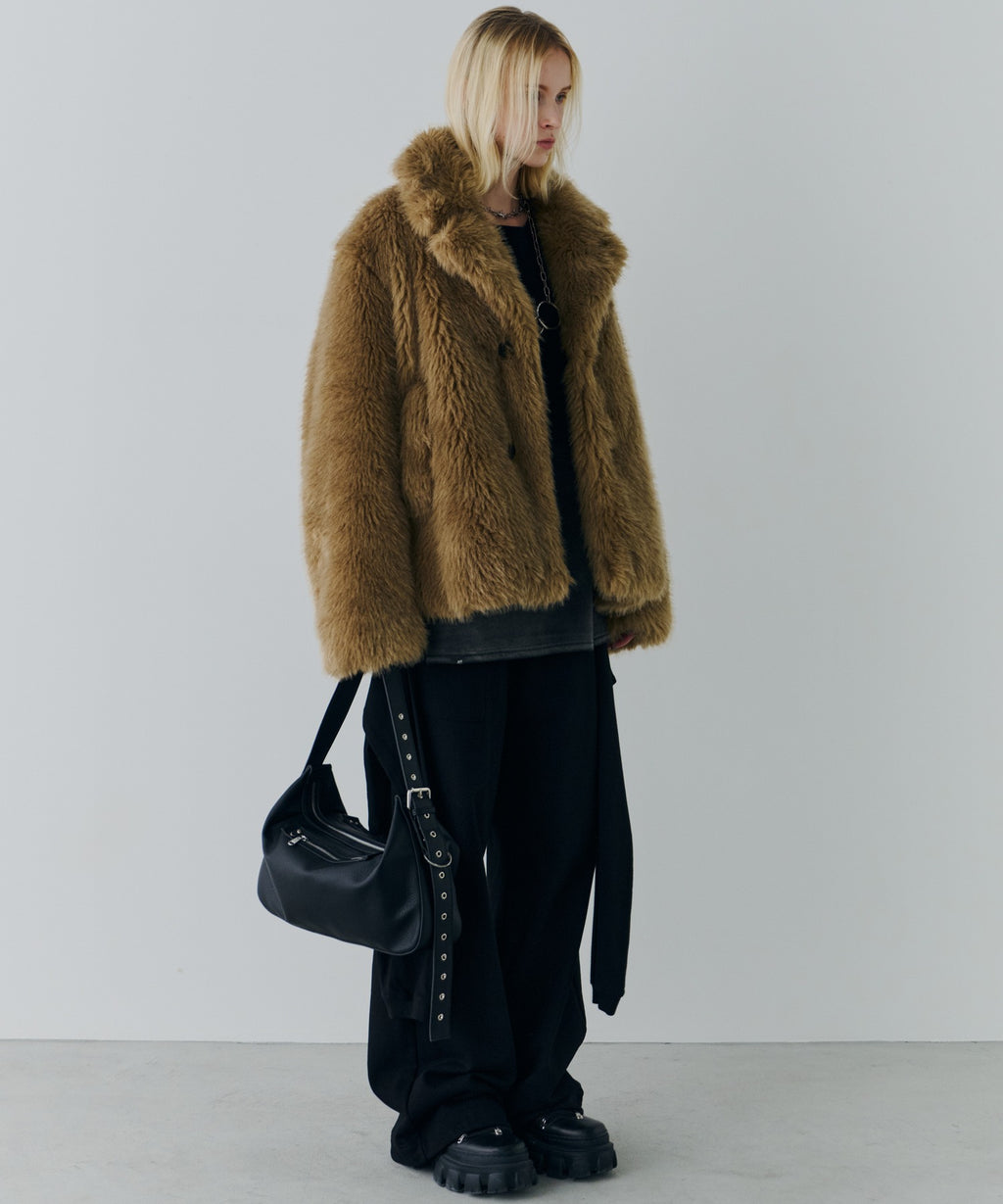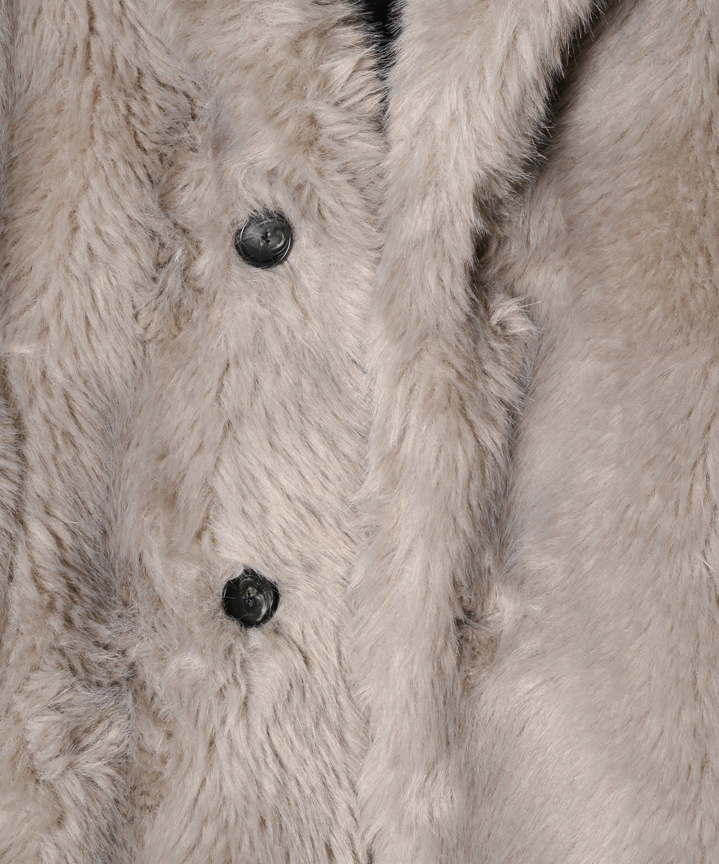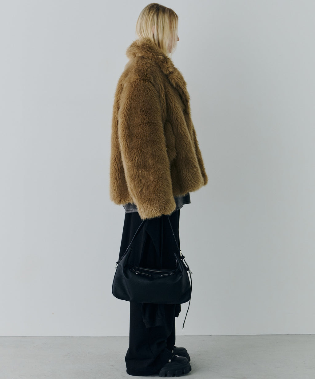 ・ワイドパンツなどと合わせやすいく、身幅はゆとりがあり中に着こみやすくゆったり着用し易いサイズ感に仕上げたファーコート