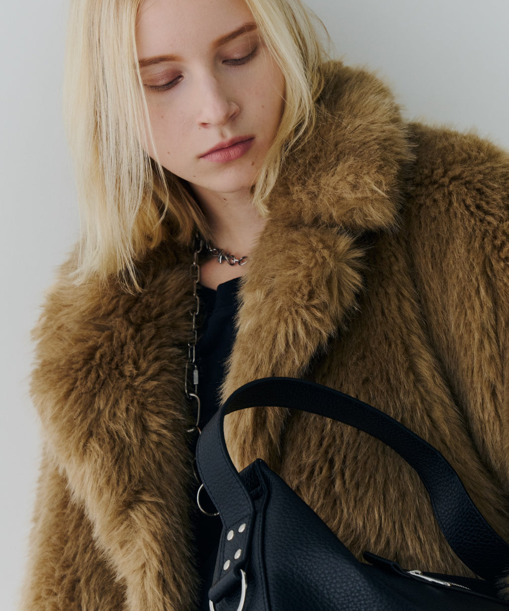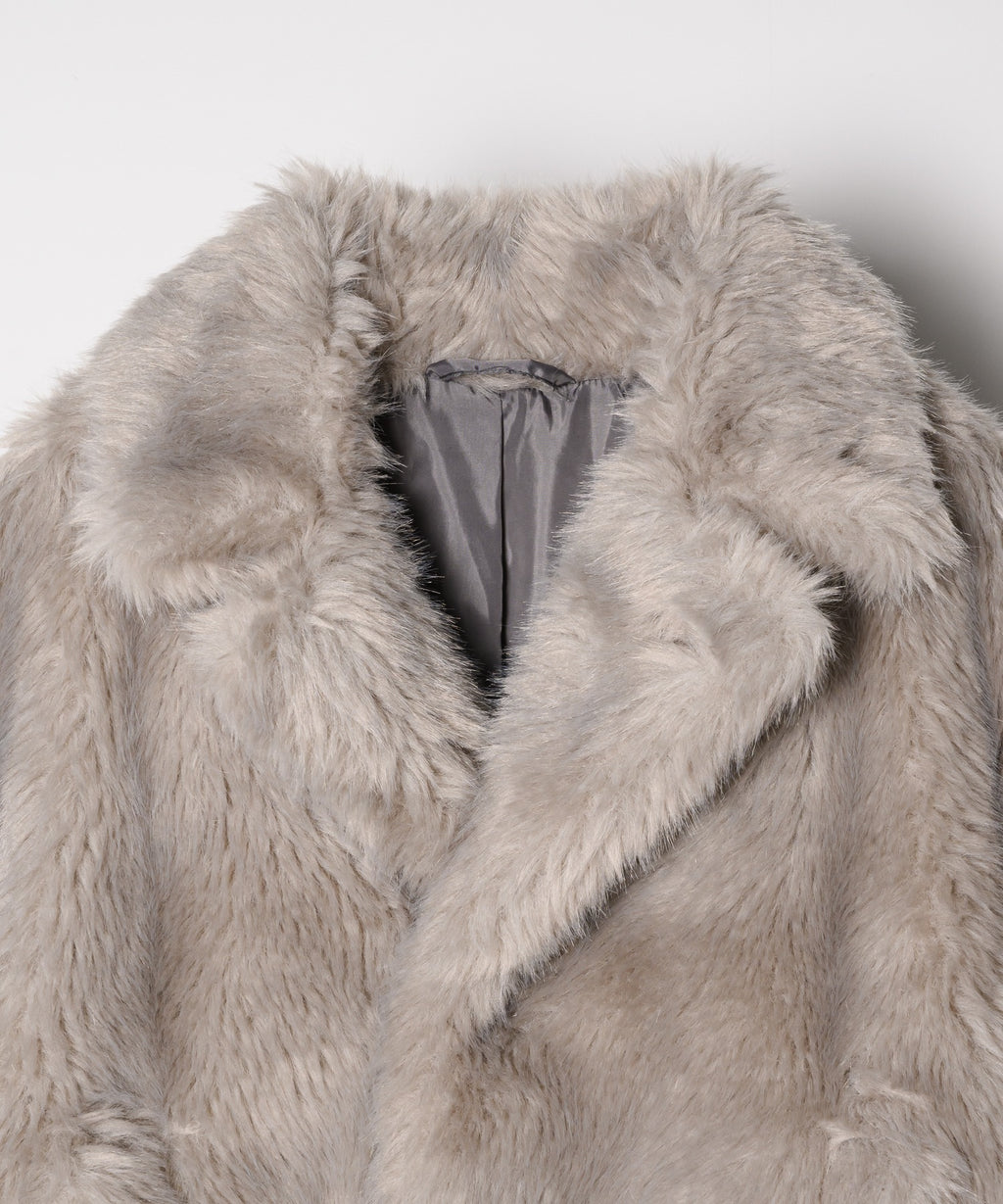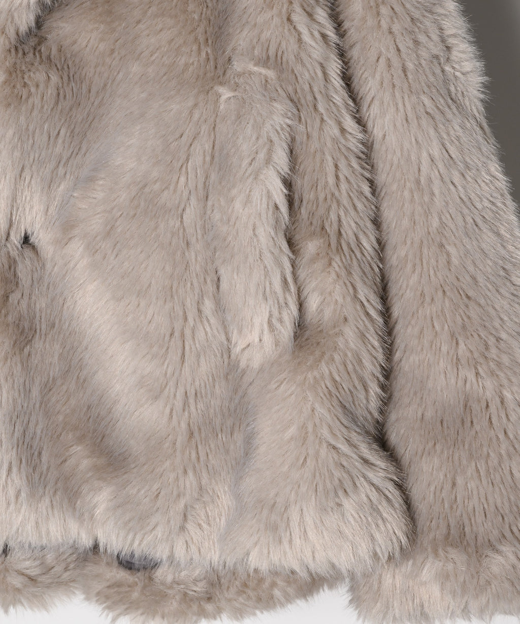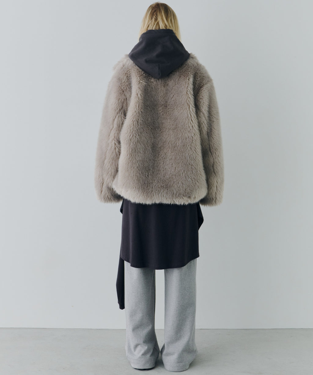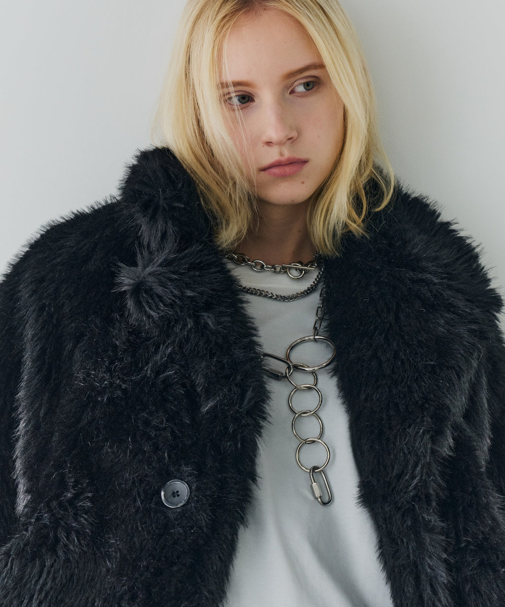 ・ワイドパンツなどと合わせやすいく、身幅はゆとりがあり中に着こみやすくゆったり着用し易いサイズ感に仕上げたファーコート