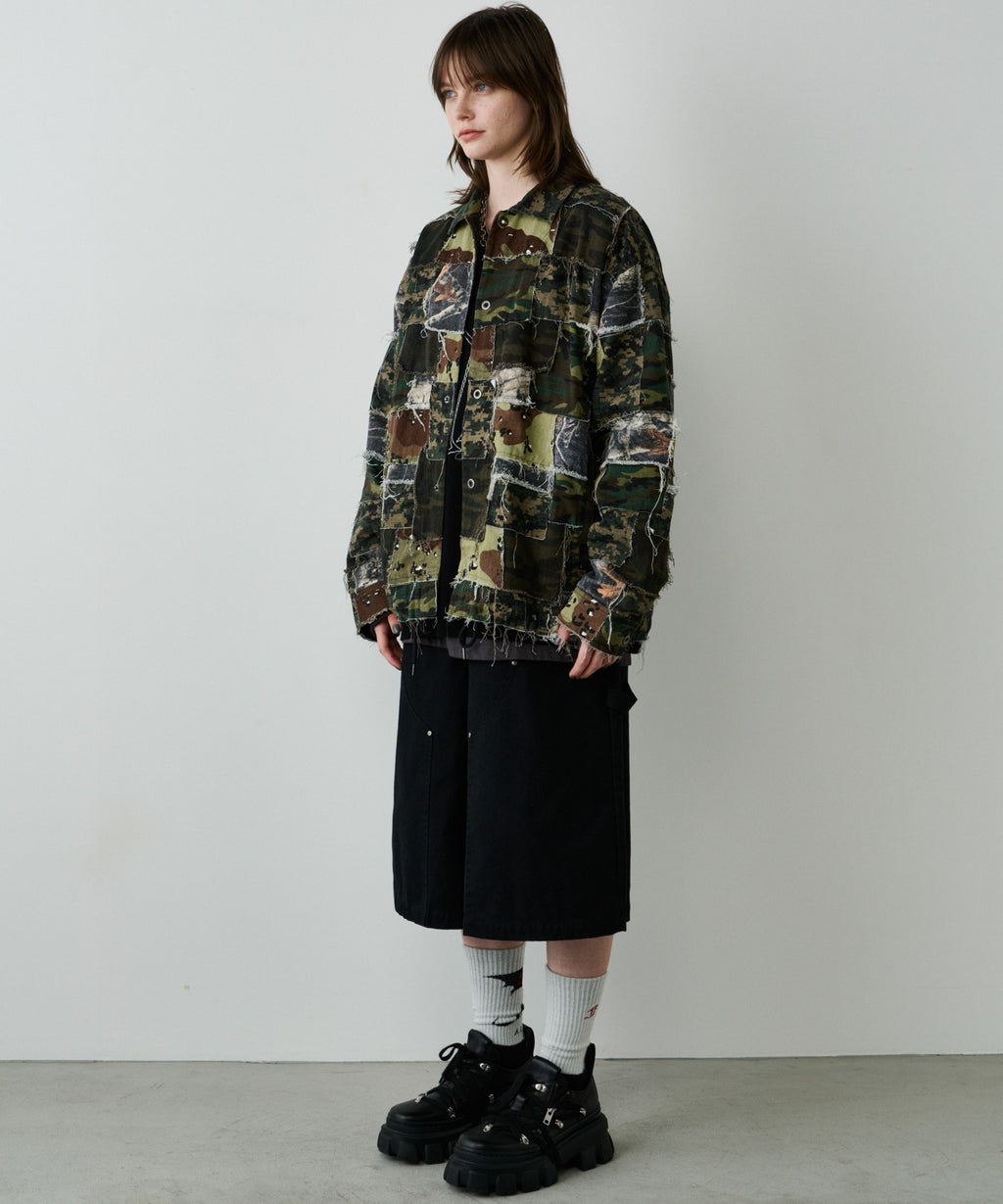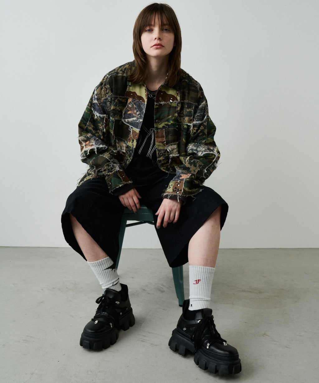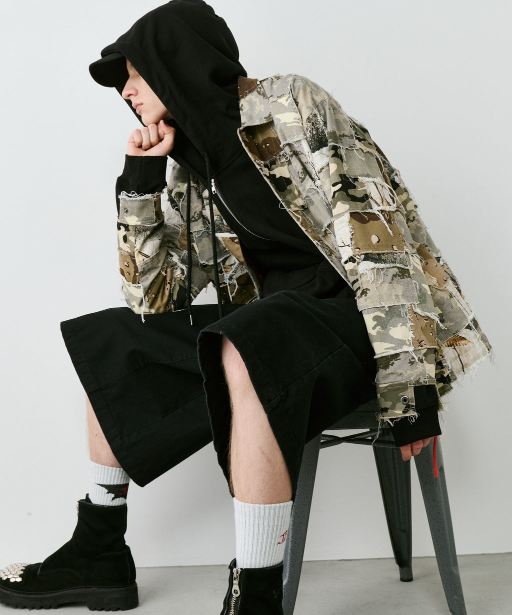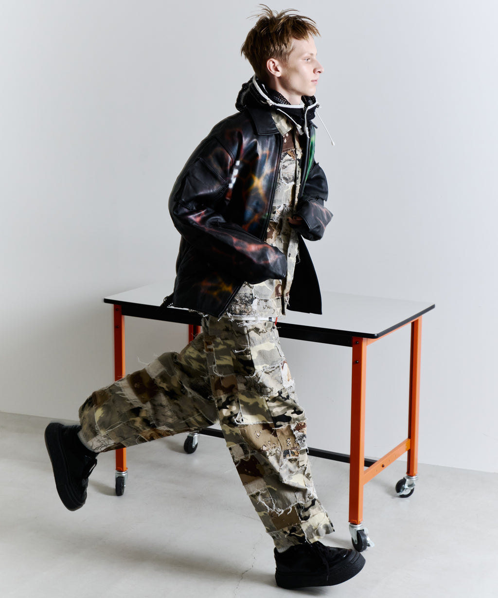 PALEDUSK×AIVER カモボロワイドクォーターパンツ