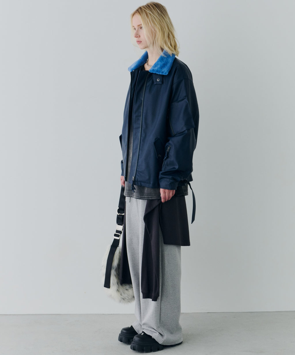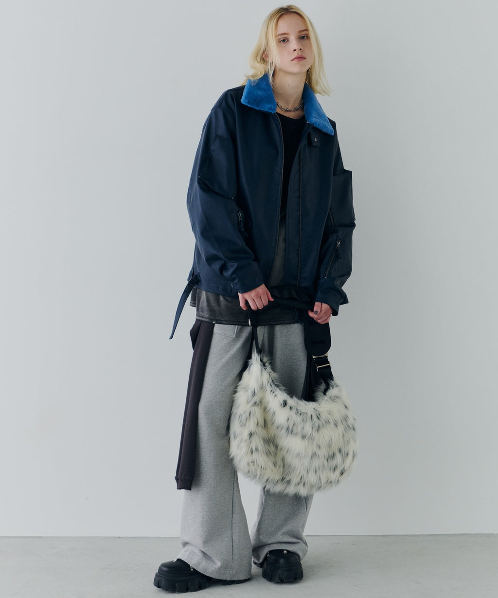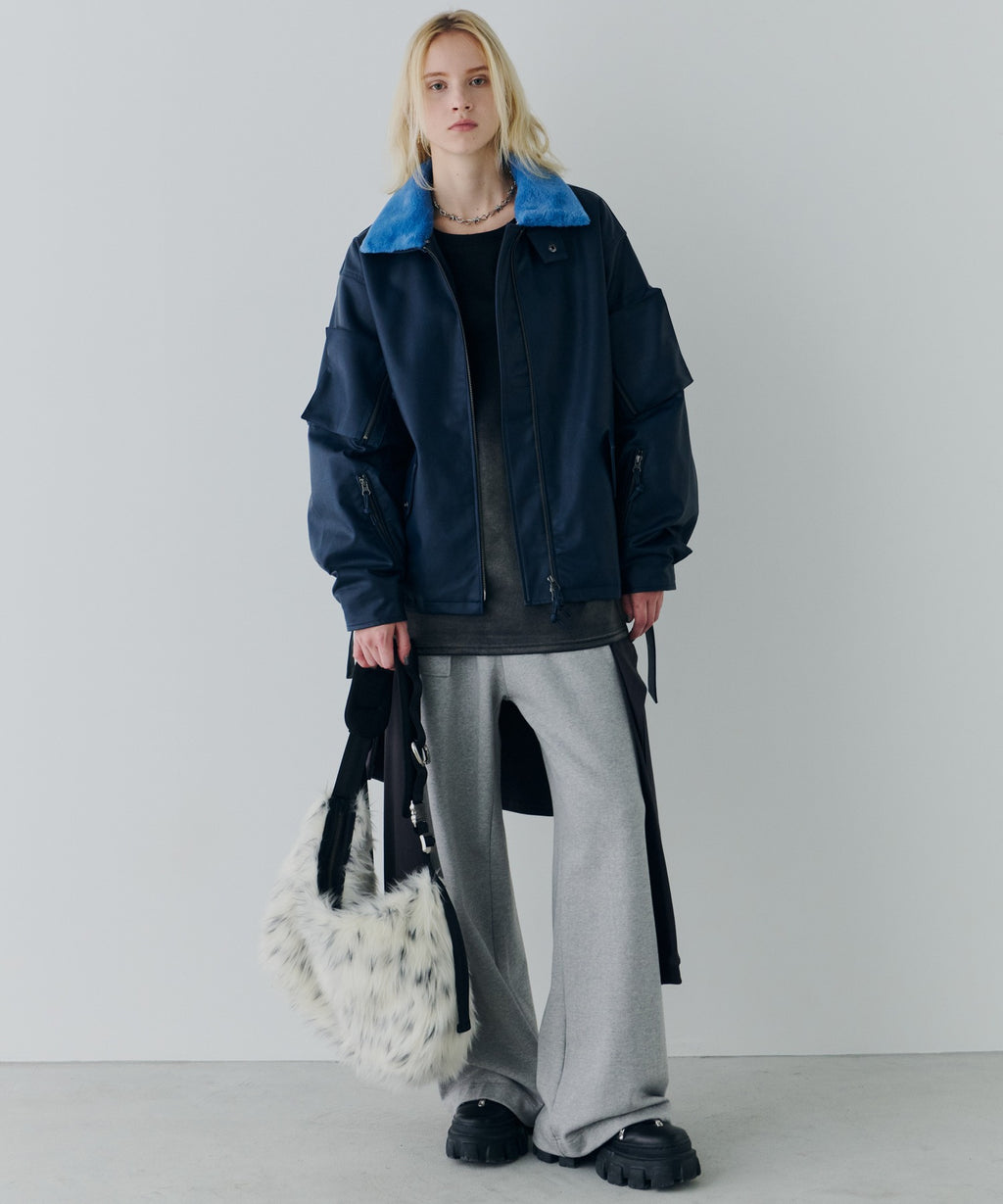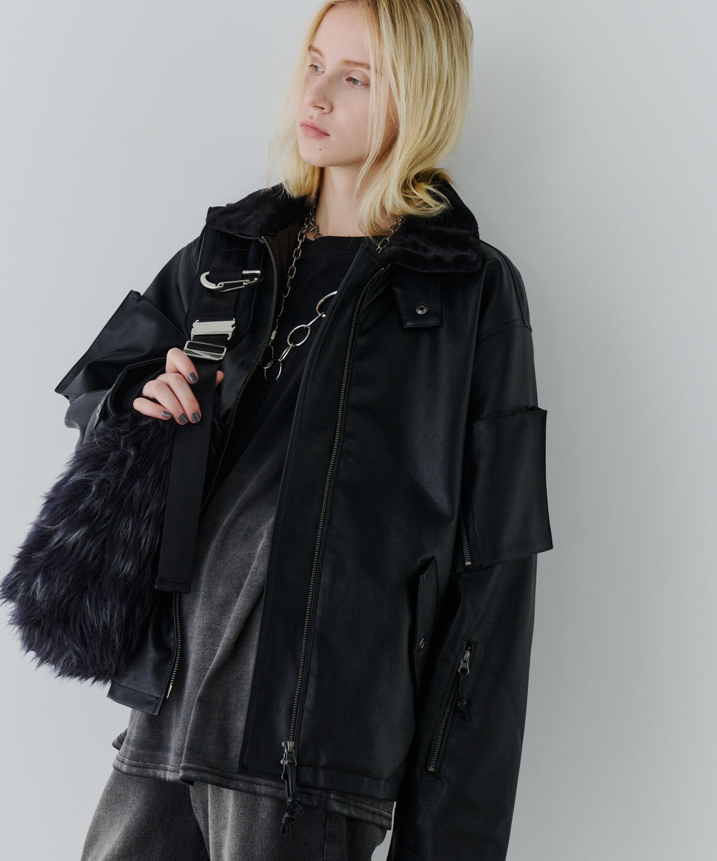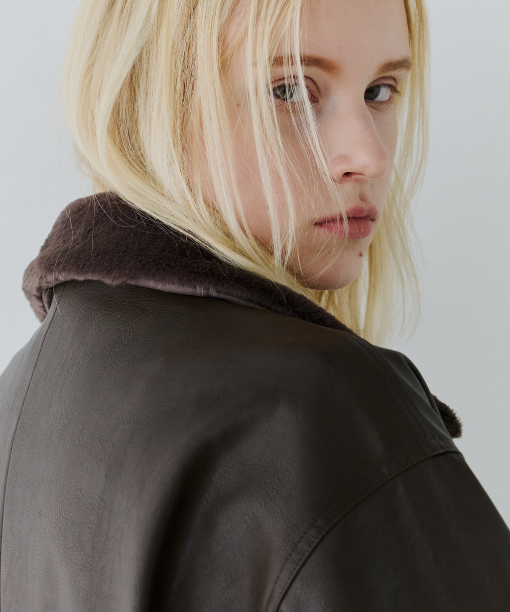・首元のリブをなくし、襟で仕立て、襟部分にはボタンで取り外しのできる厚みのあるフェイクファーをあしらった2WAYデザイン