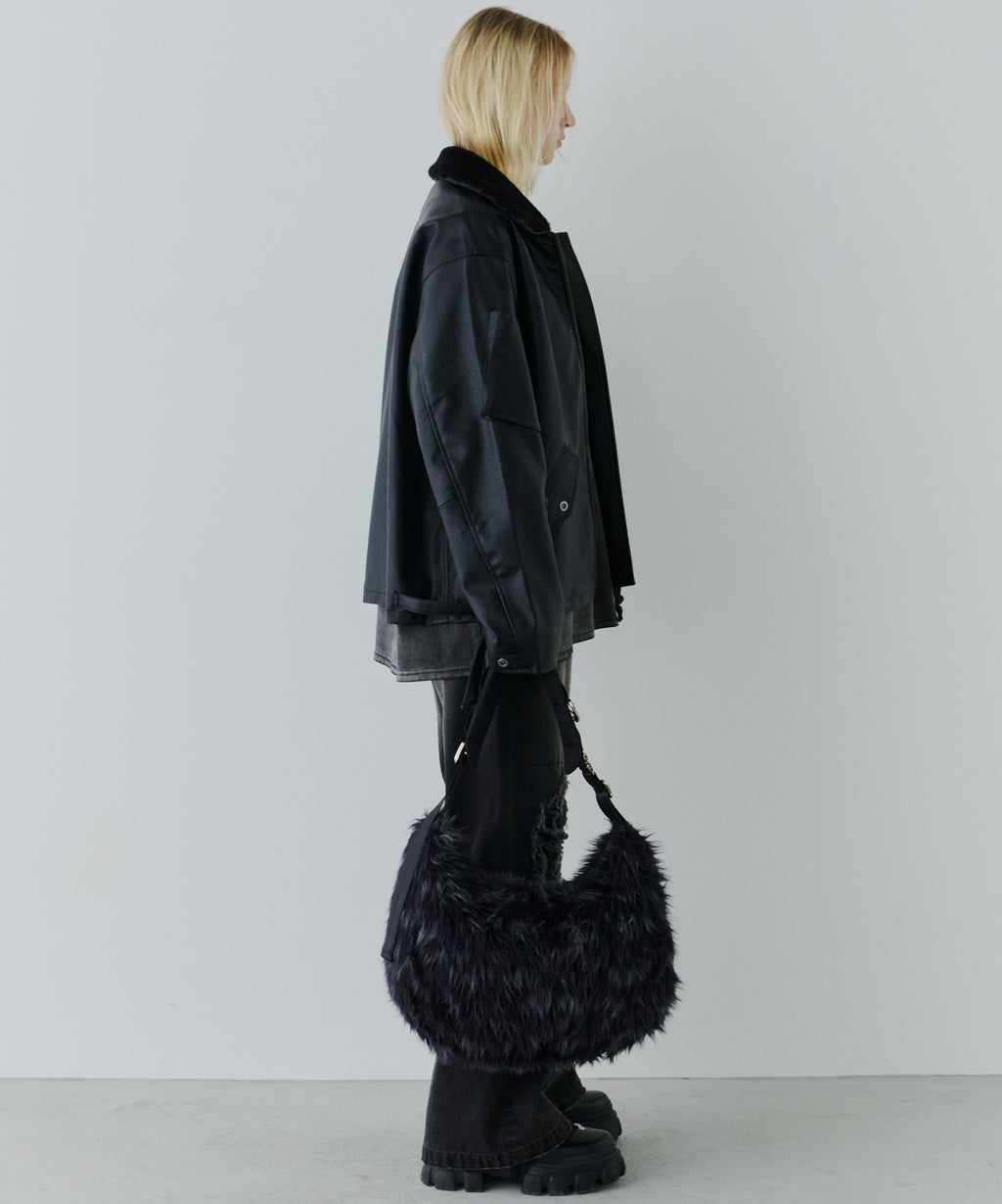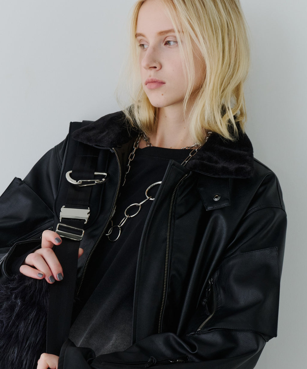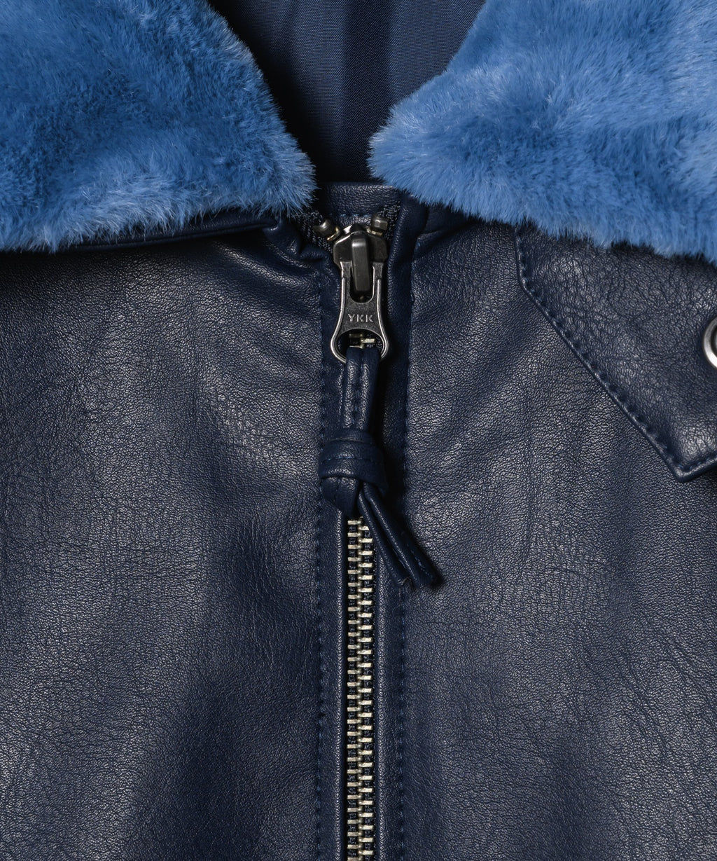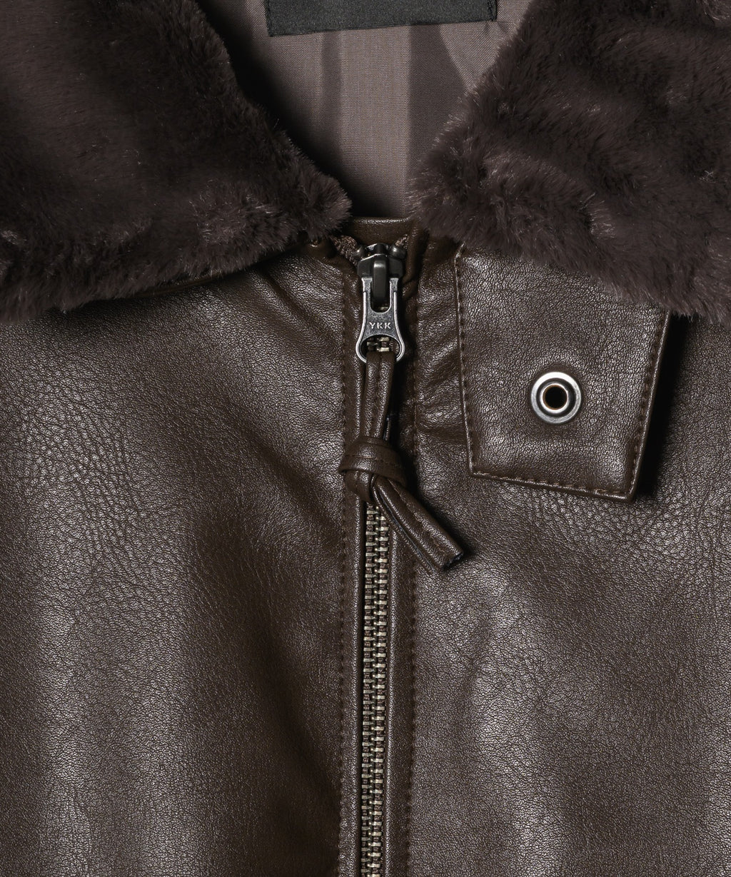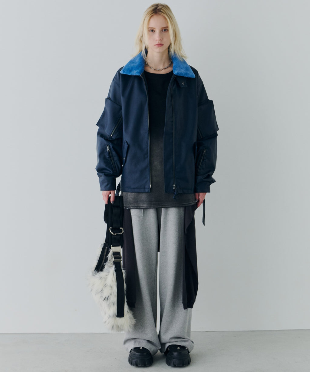 ・首元のリブをなくし、襟で仕立て、襟部分にはボタンで取り外しのできる厚みのあるフェイクファーをあしらった2WAYデザイン