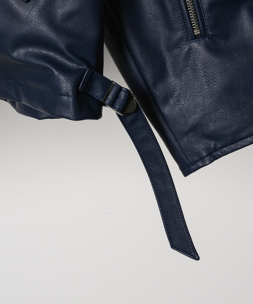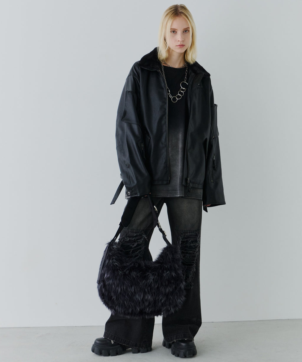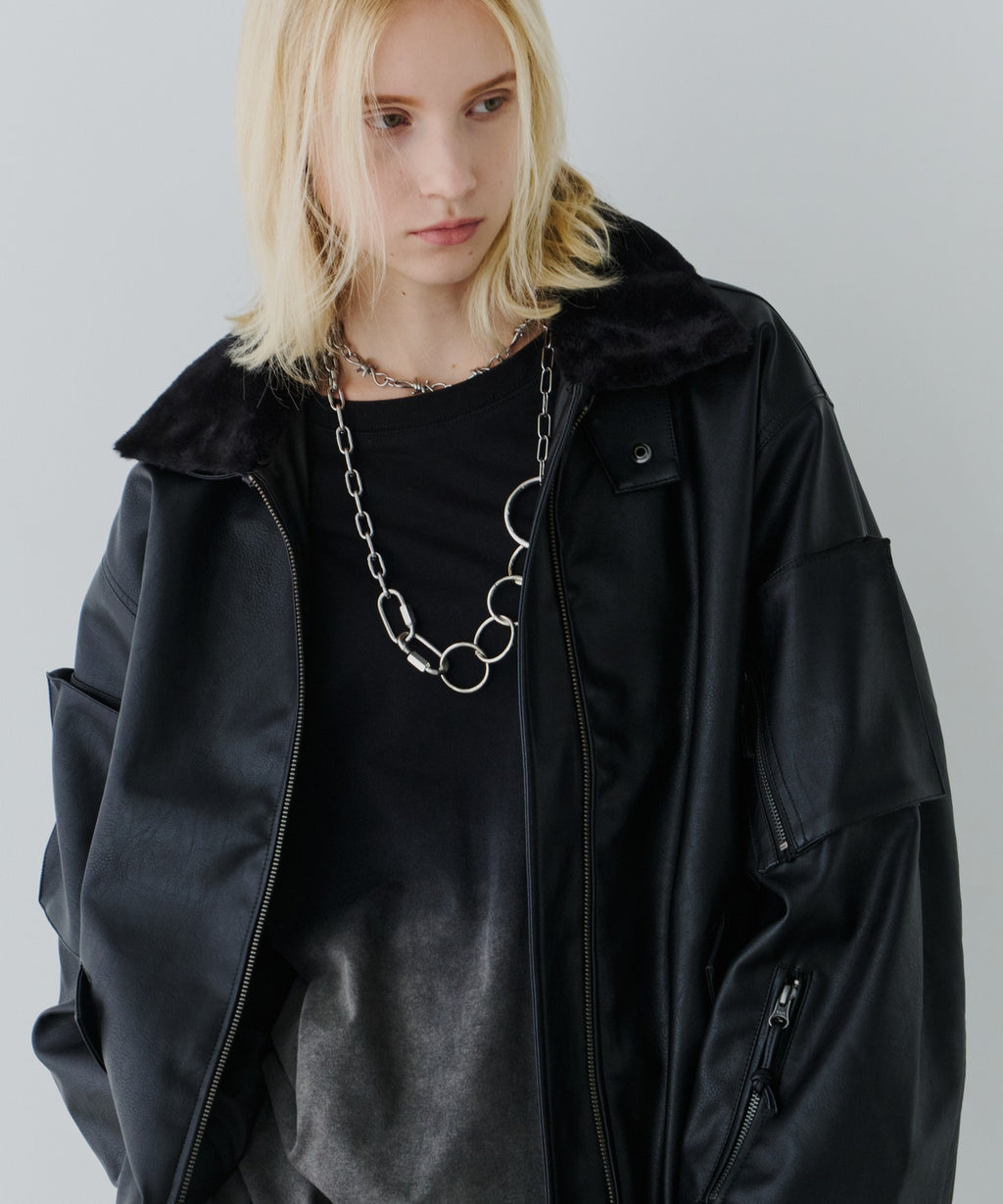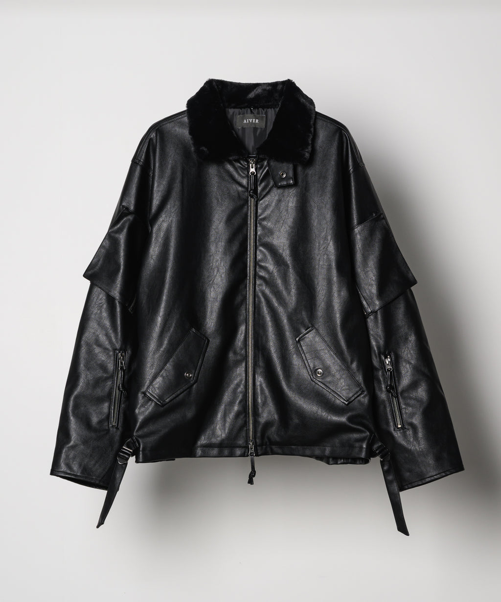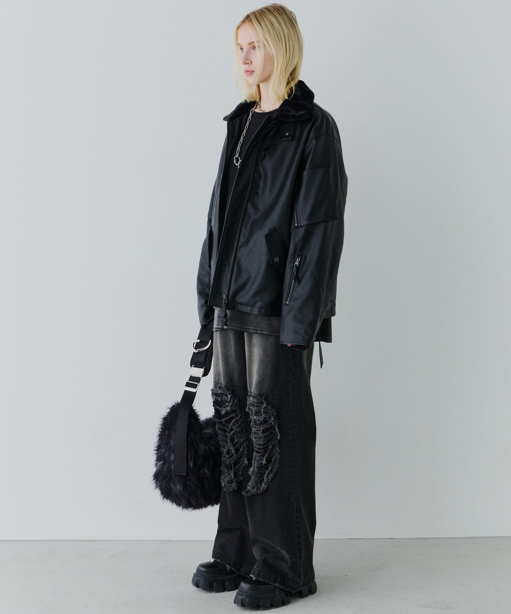 ・首元のリブをなくし、襟で仕立て、襟部分にはボタンで取り外しのできる厚みのあるフェイクファーをあしらった2WAYデザイン