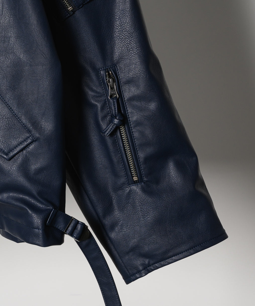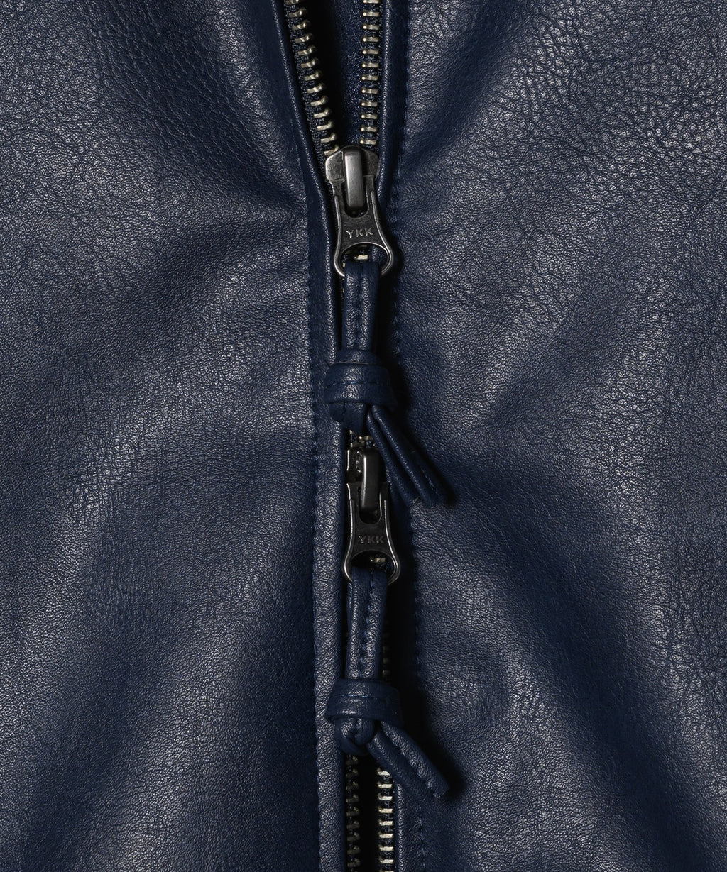 ・ポケットやセンタージップには5号YKKジップを施し、引手部分にはボディと同じレザーの紐付き
