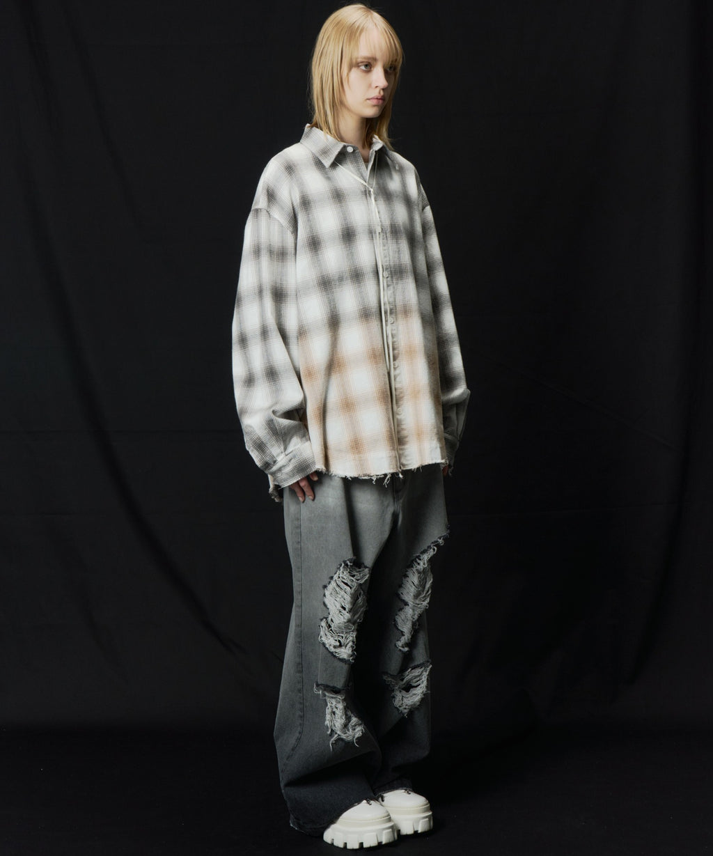 【一部予約】AIVER レイヤードオンブレチェックシャツ