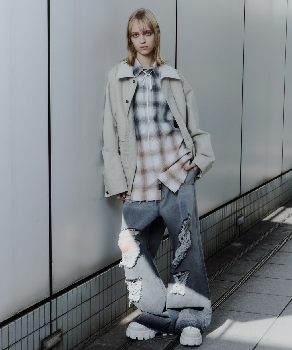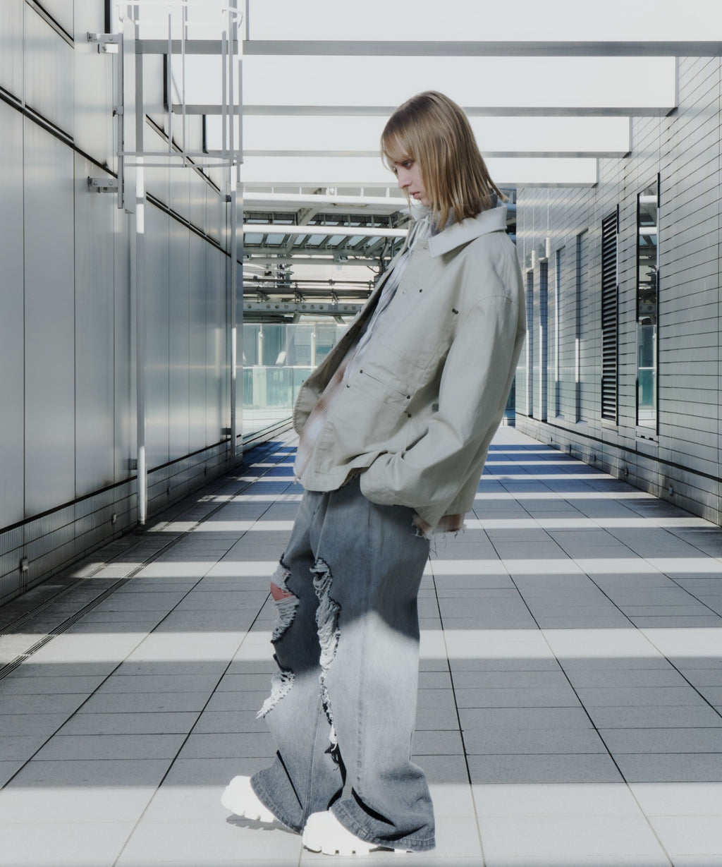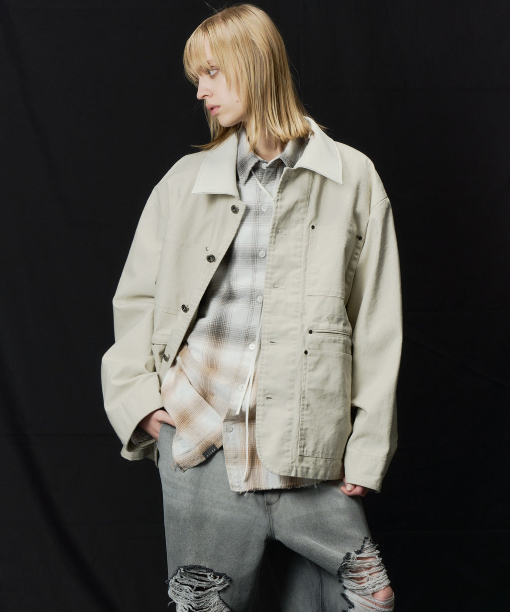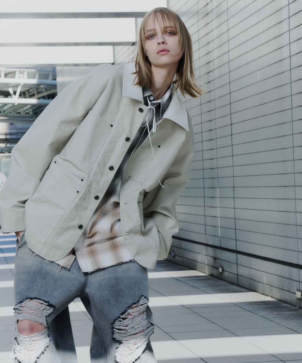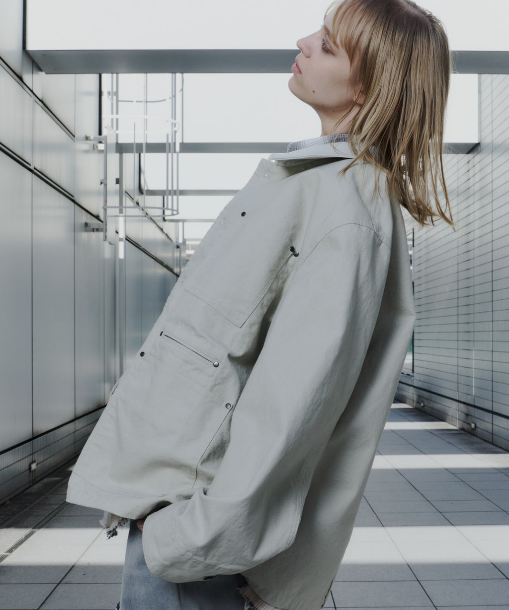 AIVER レイヤードカットオフツイルシャツ