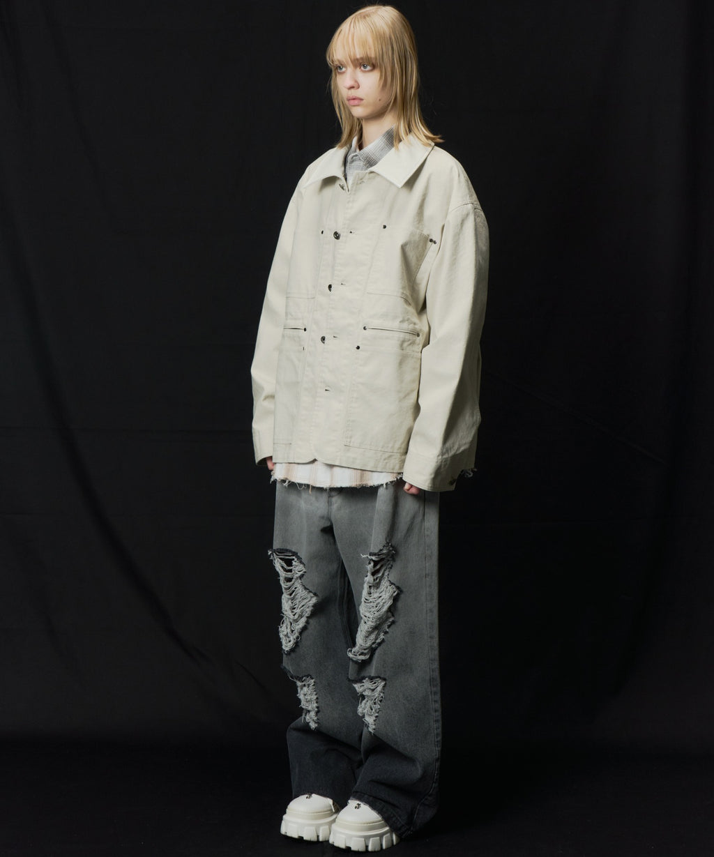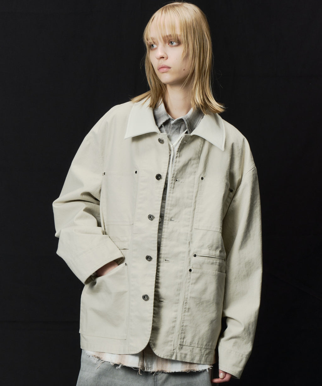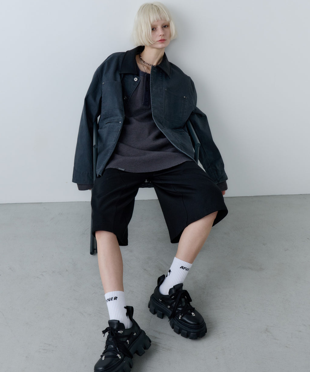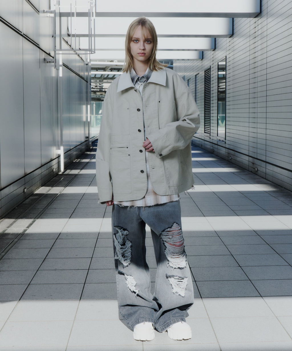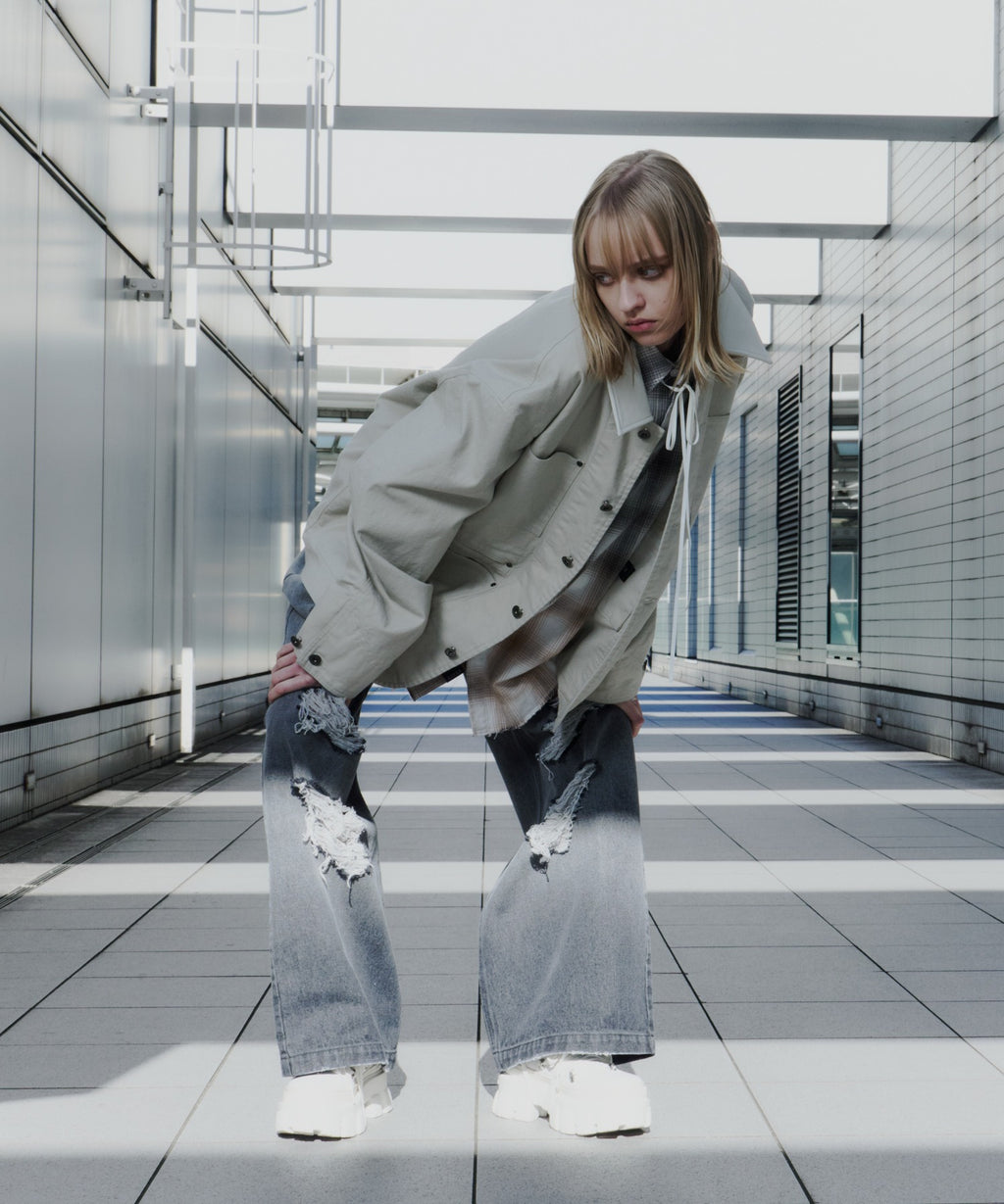 AIVER レイヤードカットオフツイルシャツ