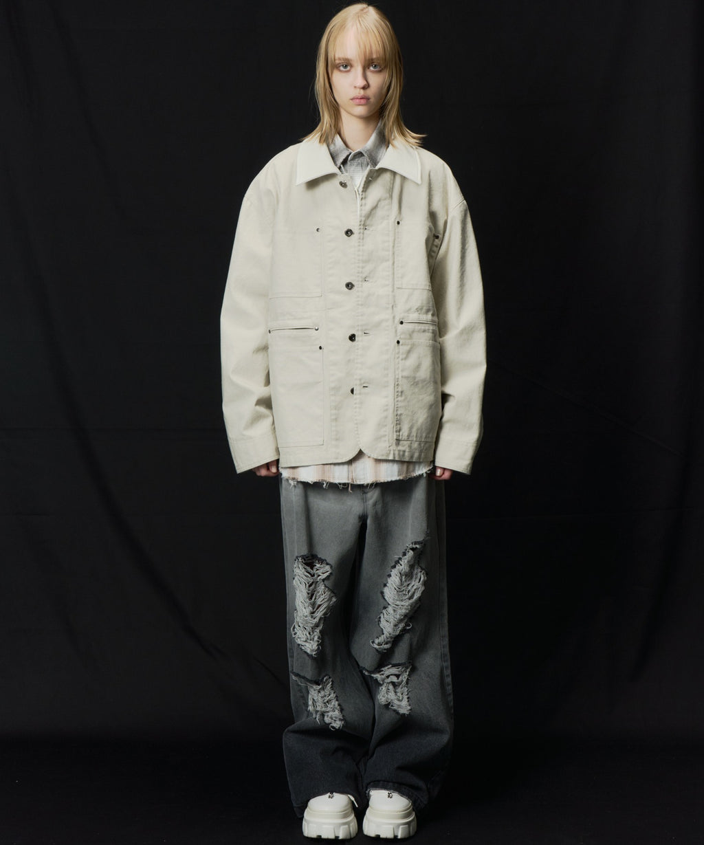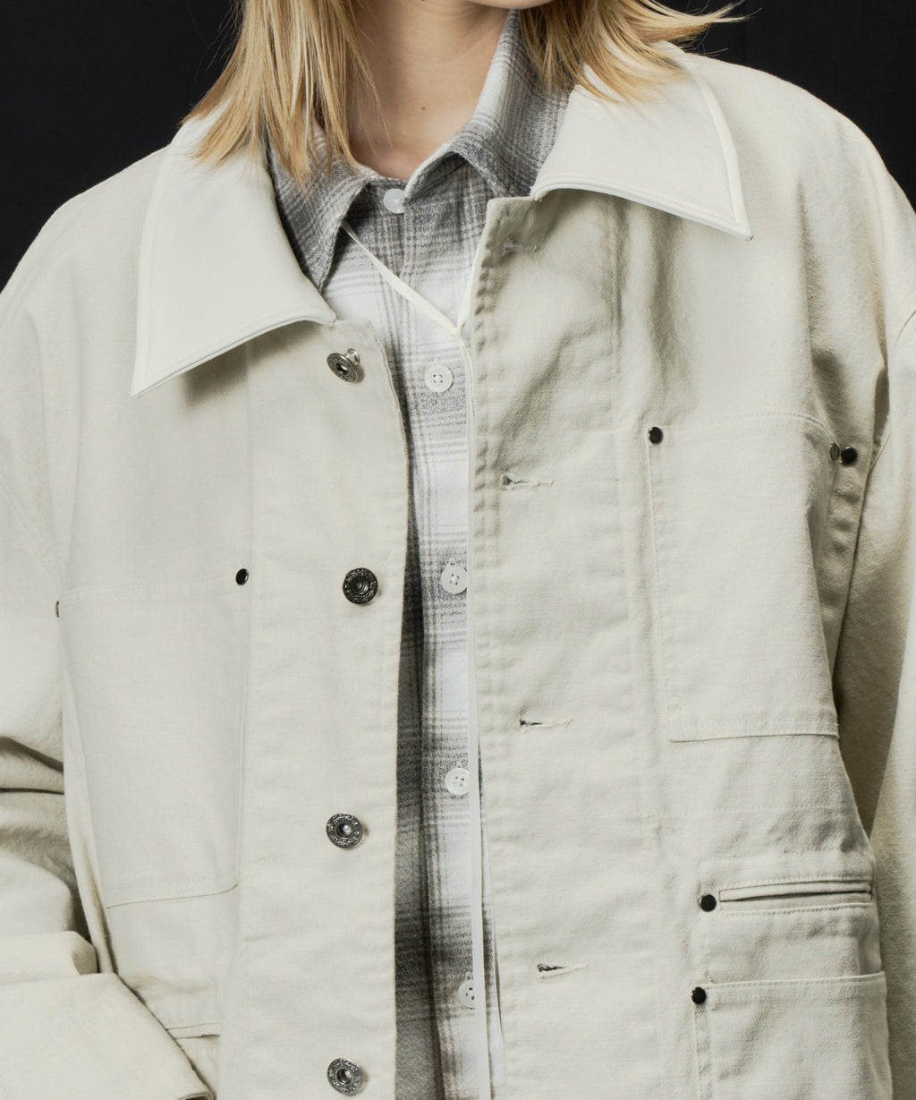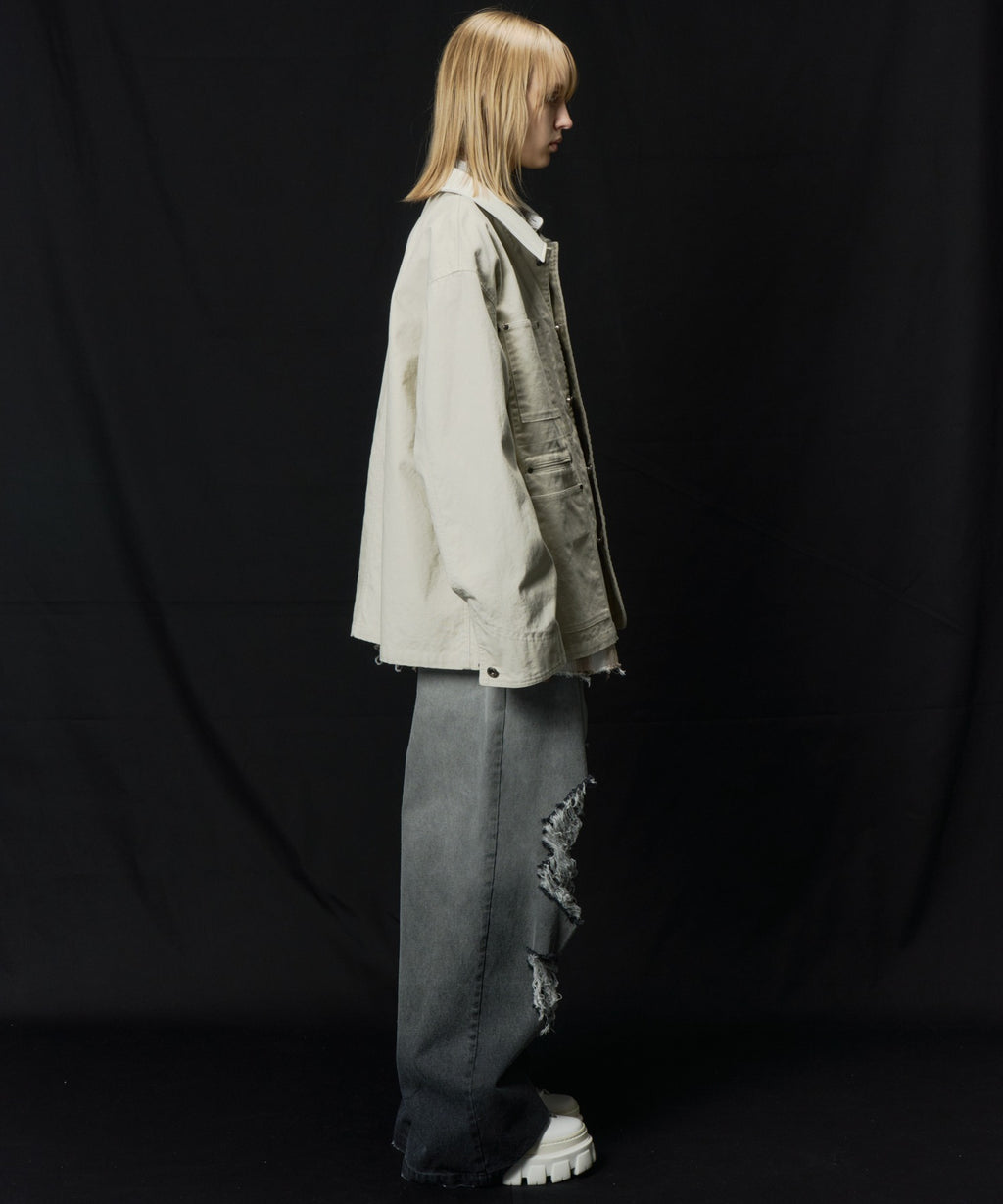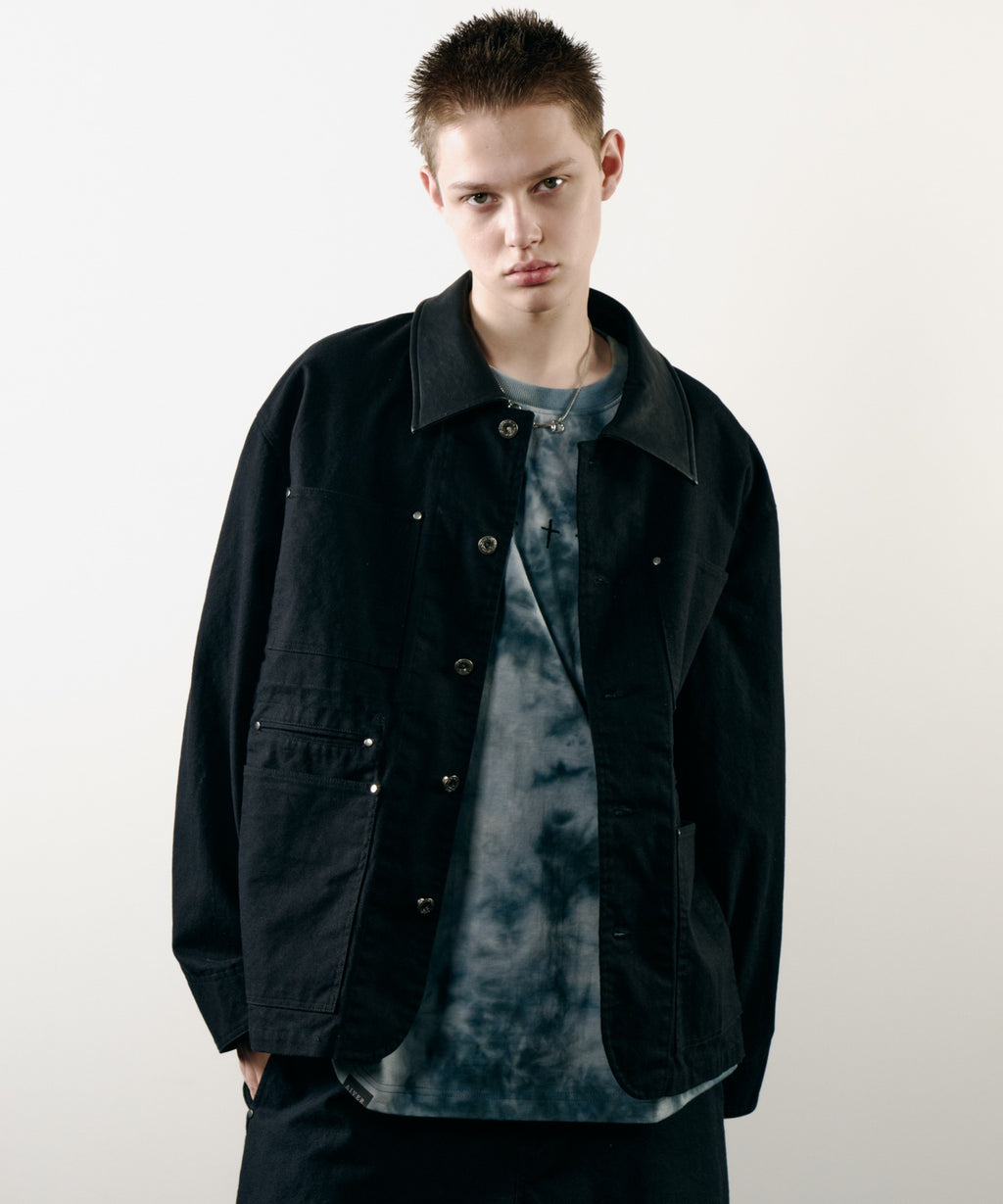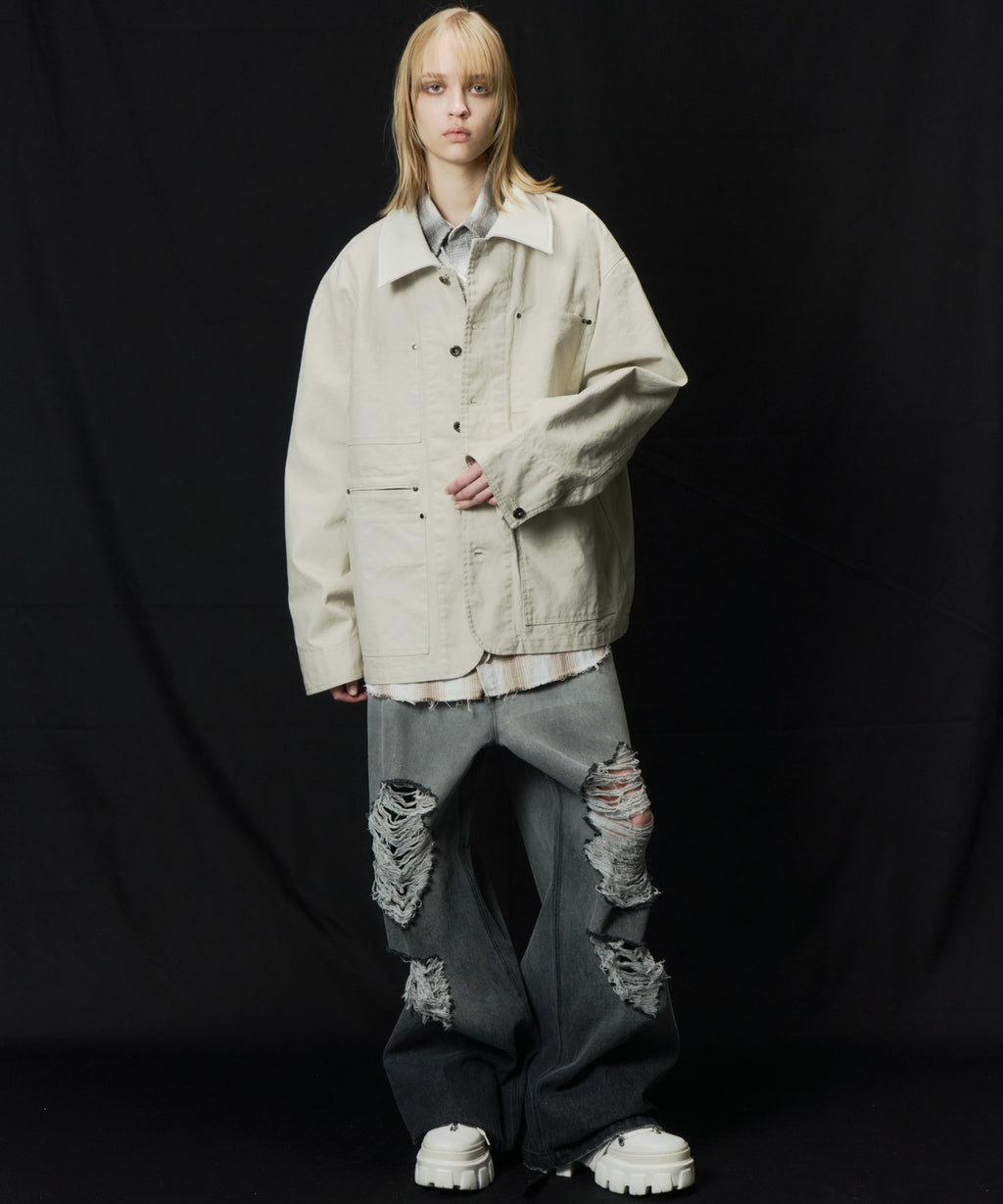 AIVER レイヤードカットオフツイルシャツ