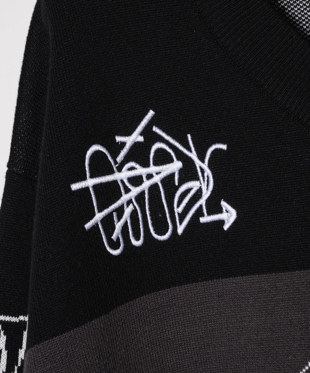・フロント,両袖の“00”の柄は編み込んだ仕様