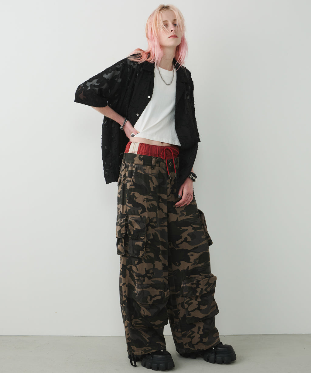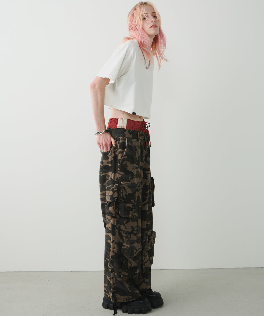 PALEDUSK×AIVER カモボロワイドクォーターパンツ