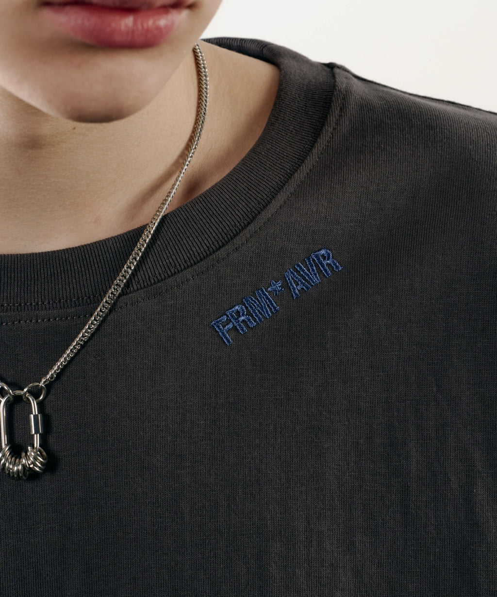 ・前身頃の左側首元にFRM AVRのフォントロゴをワンポイント刺繍