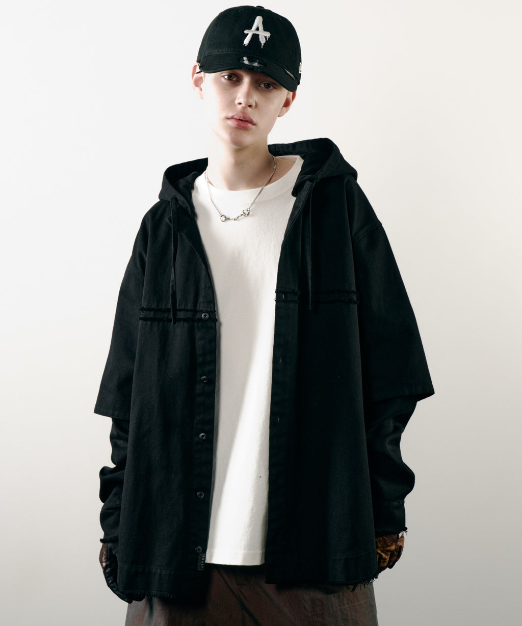 AIVER レイヤードカットオフツイルシャツ