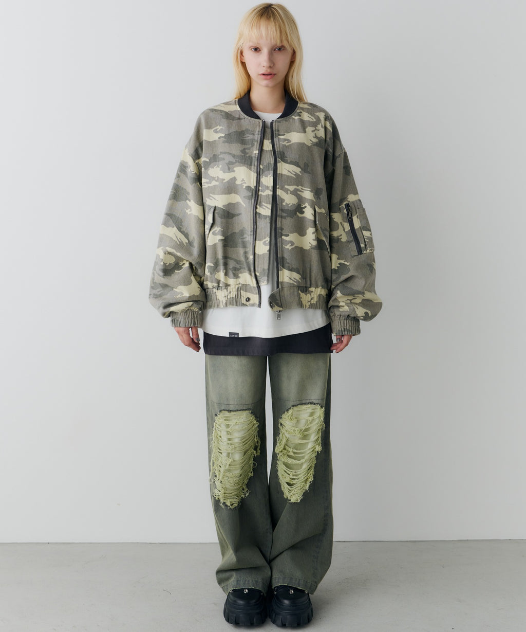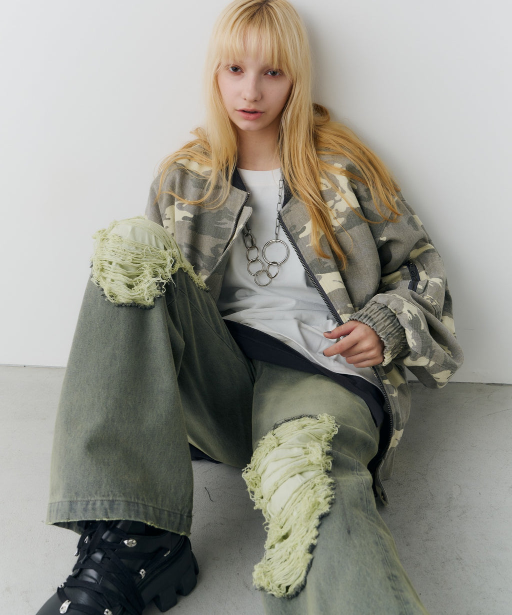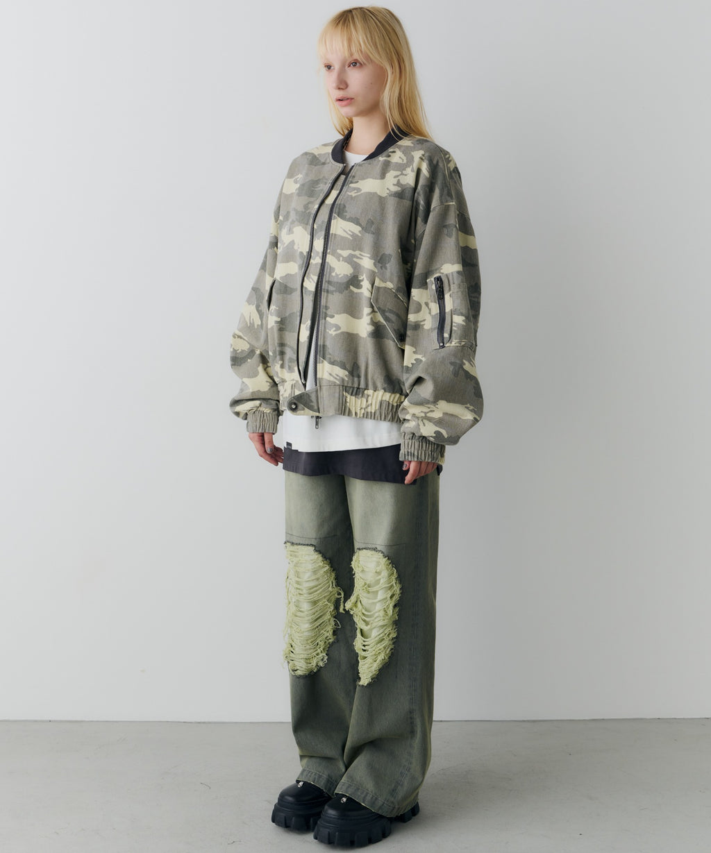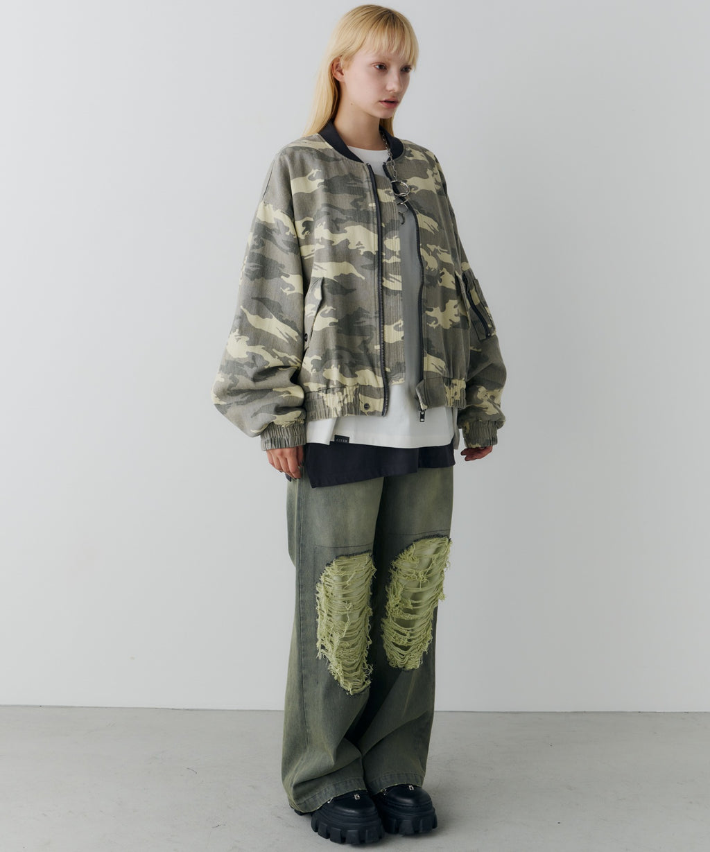PALEDUSK×AIVER カモボロワイドクォーターパンツ