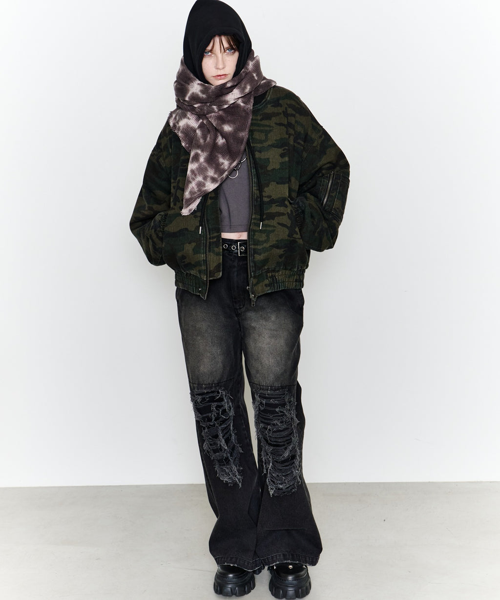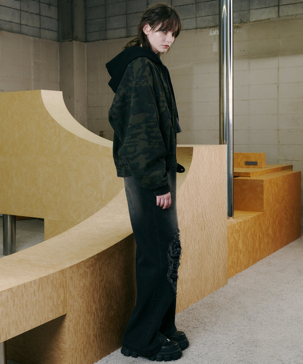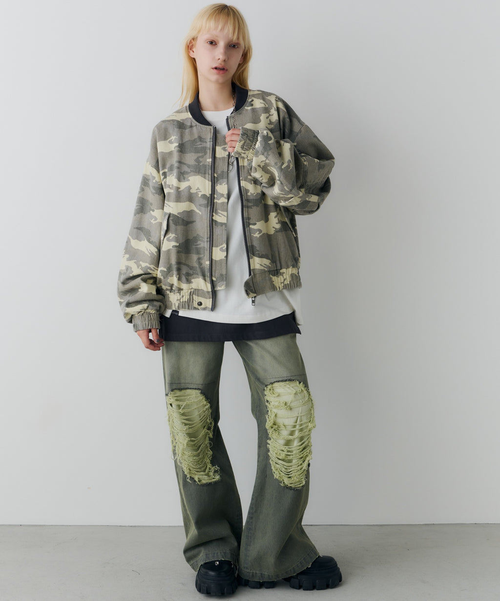 PALEDUSK×AIVER カモボロワイドクォーターパンツ
