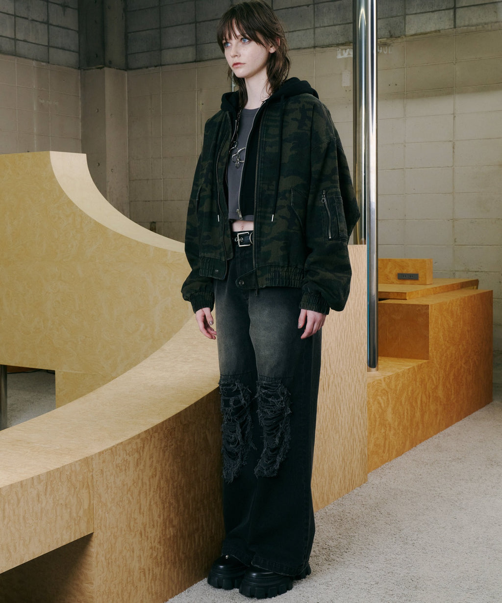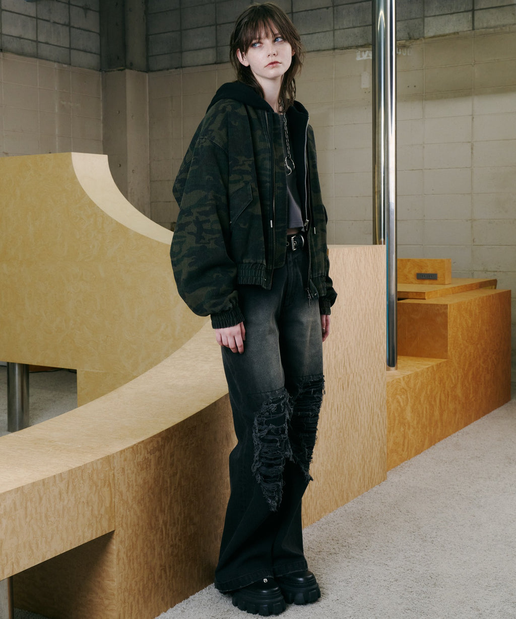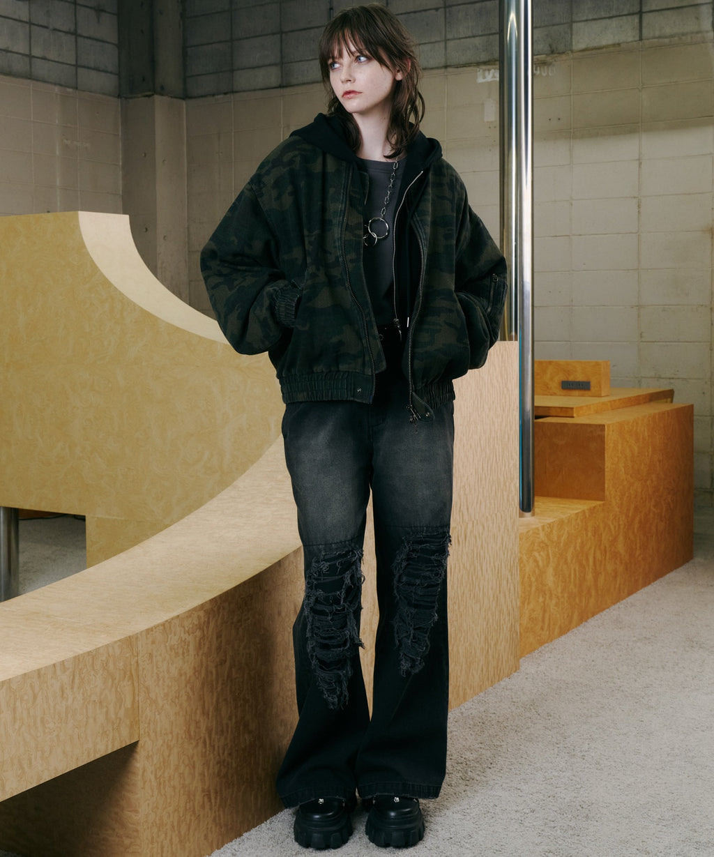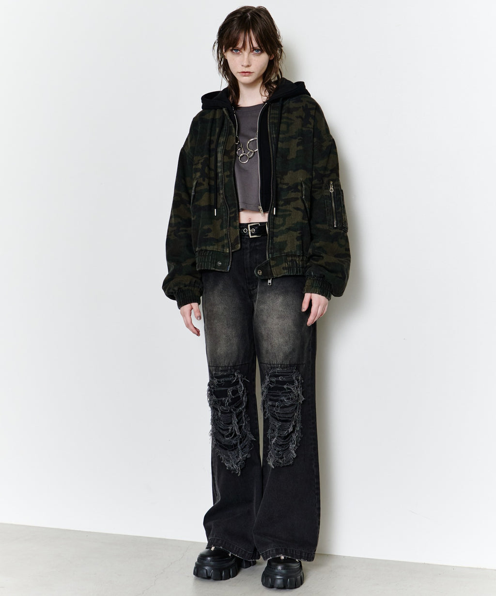 PALEDUSK×AIVER カモボロワイドクォーターパンツ